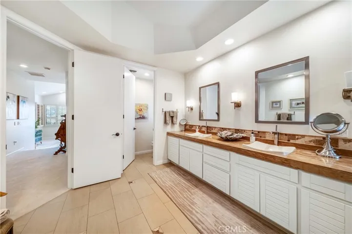 The primary suite is a serene sanctuary with direct pool access, a walk-in closet, and a spa-like en-suite bathroom complete with a jetted soaking tub. Two additional bedrooms, each with en-suite bathrooms, ensure comfort and privacy for guests.