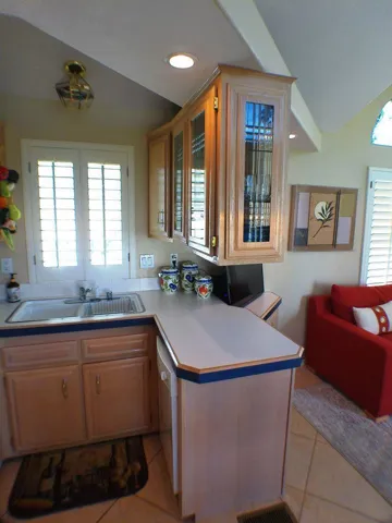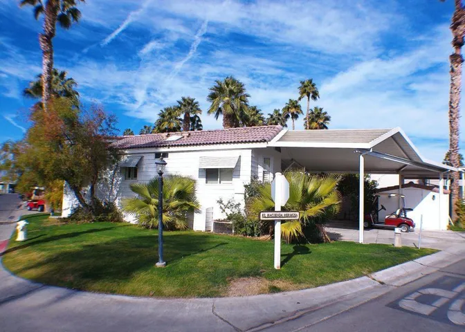 Outstanding Silvercrest Park Model located on a corner lot with a view of the Putting Course and Golf Course in the background. It offers covered parking with Auto Roll Down Shutters on the Deck. A W/D is located on the deck. The tile flooring is through-out the home and Plantation Shutters in living area. The upscale cabinetry in the kitchen and bathroom. The bathroom has been upgraded and offers tile finishing. A large bedroom with lots of storage area. Great Storage Shed. This home offers wonderful Views.Rancho Casa Blanca (RCB) features a beautifully landscaped 80-acre property with 801 individual Park Model homes/or RV sites, Two large clubhouses that function as social hubs & 4 satellite buildings with laundry facilities, mailboxes, heated pools & relaxing spas. As an owner you will enjoy FREE GOLF on your 18-hole par 3 golf course, a 9-hole putting course, 2 practice chipping/putting greens, 6 heated pools/spas, 2 tennis courts, 8 pickle ball courts, shuffleboard courts, horseshoe pitch, fitness center & over 60 Clubs & Classes. This park has a limit of 270 day occupancy (not consecutive) out of 365 calendar year.