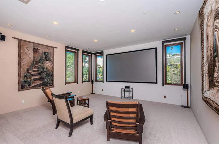Exquisite Custom Estate with Breathtaking Views Nestled on 3.75 acres of pristine land, 2362 Edgehill Road stands as a one-of-a-kind architectural masterpiece, offering unparalleled privacy and luxury. Designed by the owner in collaboration with renowned local builder Norbert Waldenmayer, this stunning 5,749 square foot home was completed in 2003 and boasts contemporary design, exceptional finishes, and panoramic 270-degree views stretching to the ocean and Catalina Island. As you enter the gated community, the sense of exclusivity and security is immediate. A long, private driveway leads you through beautifully landscaped grounds, showcasing an array of native plants and chaparral carefully chosen by the owner. The freshly sealed stamped concrete spans nearly 10,000 square feet, including the impressive circular driveway that culminates at the four-car garage and front entrance. Step inside to find a grand entrance with oversized travertine flooring, custom cabinetry, and marble countertops. The stunning stone façade adds a warm, welcoming touch, while the family room’s fireplace offers a cozy, ambient glow that enhances the entryway. The layout of the home is ideal for both private living and entertaining, with easy access to the main living areas or the private bedroom wings. The expansive living room features floor-to-ceiling windows that flood the space with natural light and highlight the breathtaking views. A built-in wet bar and access to a spacious patio create a seamless indoor-outdoor living experience, perfect for entertaining guests. The chef’s kitchen is a true highlight, featuring a massive 7’ x 10’ island that comfortably seats 6-8 people. Surrounded by panoramic views, this culinary haven boasts granite countertops, high-end Dacor appliances, including a six-burner gas grill with electric dual ovens, and a Sub-Zero built-in fridge/freezer. Adjacent to the kitchen is the formal dining room, perfect for large gatherings, measuring 16’ x 15’ with access to a view deck complete with a gas BBQ and seating area. On the main level, you’ll also find a cozy family room with recessed lighting, a dual-sided gas fireplace, and fresh new carpet. An elegant office with custom built-in cabinetry provides the perfect space to work from home, while a state-of-the-art home theater room, featuring a giant screen, projector, surround sound, and blackout shades, offers an incredible entertainment experience. The private master suite, located on the south side of the home, provides a serene retreat with lush carpeting, private patio access, and sweeping views. The en-suite bath is a luxurious spa experience, featuring a double-sided vanity with marble countertops, a standalone clawfoot tub, and a custom-tiled shower with stunning westward views – perfect for watching the sunset while you unwind. Three generously sized secondary bedrooms, each with their own en-suite bathrooms, provide ample space and comfort for family or guests. The home also offers a four-car garage with abundant storage and freshly applied epoxy flooring. Additional highlights include three separate AC zones, a wine room with its own AC unit, a zoned radiant heating system powered by a boiler, a forced air system, a water pressure booster pump, and a fully paid-off 10KW solar system with 44 panels, making this home as energy-efficient as it is luxurious. 2362 Edgehill Road is a truly extraordinary estate that must be seen in person to be fully appreciated, especially when the city lights come alive at night. Don’t miss out on this rare opportunity—schedule your private tour today!
