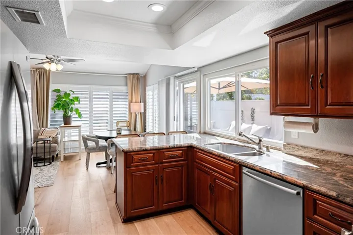 One story, Furnished , Short term 31 days to 12 month lease available. Rare One story with cathedral ceilings, 3 Bedrooms and 2 bath detached single family home in University Park , Irvine. It is centrally located in Irvine. The house features a great room, kitchen, and family room which opens to kitchen, 3 spacious bedrooms and 2 bath and attached 2 car garages. No steps inside house. The great room has a high ceiling with beam ceilings, many windows which make the house very bright and open. A fireplace in living room. Kitchen has granite counter tops and beautiful wood cabinets, remodeled bathrooms. Newly installed wood flooring through out the house , No carpets. Newer Plantation shuttles and newly painted interior, fans , vanities. Over $100000 spend to make a beautiful very low maintenance front, Back and side yard. Steps walk to HOA park with a junior Olympic swimming pool, spa and kids pool, Children play ground, club house and tennis court. Walking distance to famous University elementary , Rancho San Joaquin Middle school and biking distance to University High School and UCI, grocery, bus station. It is located in the heart of Irvine. Easy access to 405, Irvine Business Complex, John Wayne airport, Spectrum Business Center, Southcoast plaza and Beaches with renowned world class shopping , restaurant and entertainments.