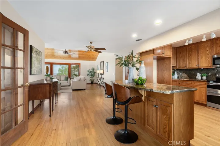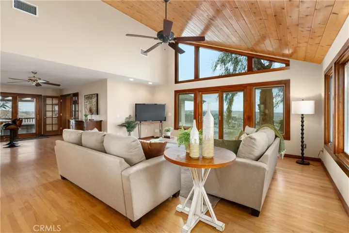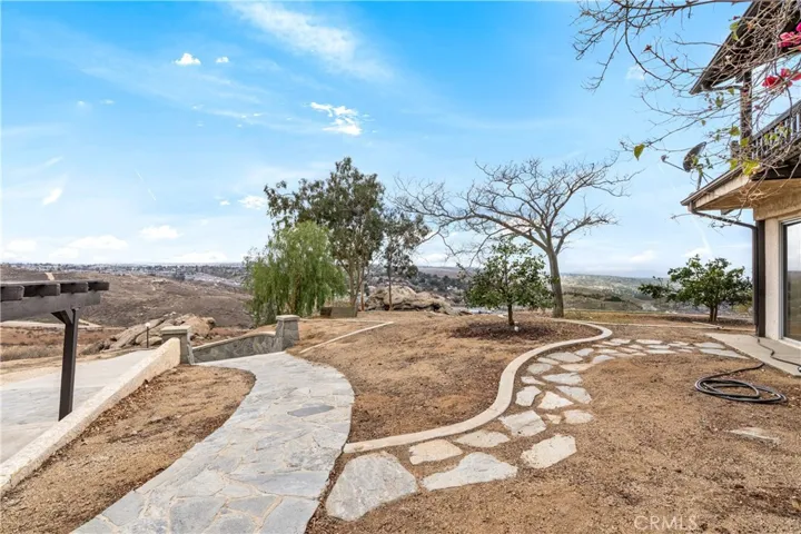 Imagine living in a serene hilltop custom-built home designed for luxury and modern convenience. Nestled in the Box Springs Mountain range, this home offers both privacy and expansive open living spaces. Perfect for those seeking off-the-grid living, this 12-plus-acre paradise offers the perfect blend of self-sufficiency and connection with two wells, solar panels, and two septic systems. Plus, you’re connected to electricity with the public utility providing extra peace of mind. Step inside to discover exquisite hardwood flooring and broad windows that flood the space with natural light and showcase breathtaking panoramic views. The vaulted natural wood ceilings in the living spaces provide a spacious atmosphere. There are two main living rooms, which both offer places for entertaining, dining, and enjoyment of this hill top paradise. The dining and living rooms boast unparalleled views of Mount Baldy, creating a mesmerizing backdrop for every meal and moment. Picture yourself relaxing on the living room balcony, taking in the stunning west-facing vistas of the mountains and twinkling city lights. With two bedrooms upstairs and a primary suite downstairs, this home provides fantastic flexibility for any lifestyle. The lower bedroom in the main home could easily be converted into a JR ADU, offering great potential for multi-generational living or additional revenue. Additionally, the property features a detached ADU which sits over the two-car garage. Also home has a half-court basketball court. The ADU has its own living area, kitchen, bedroom, and bathroom (450 sq ft +/-)—a fabulous bonus for guests or potential rental income. Zoned as R1, there’s potential to subdivide the property for future investment or development opportunities. This hilltop retreat is your chance to experience the best of both worlds—secluded, self-sustaining living with the comfort and connection of modern amenities. Don’t miss out on this unique opportunity to call this remarkable property your home.