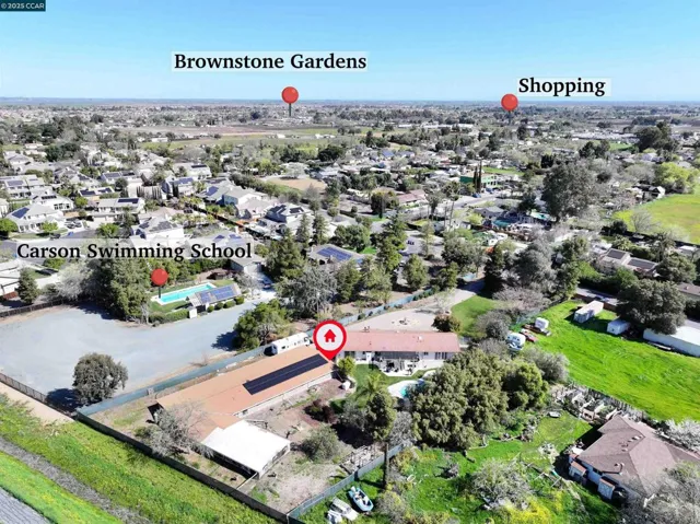 Discover a rare acreage home in the heart of Brentwood—a perfect mix of comfort, space, and opportunity. This beautifully updated single-story 4-bedroom home sits on just over an acre, with plenty of room for RVs, boats, vehicles, or business equipment—ideal for home-based entrepreneurs who need both convenience and privacy. Tucked just off Lone Tree Way, you’re close to shopping, dining, and services while enjoying the peace of your expansive lot. Modern upgrades make ownership simple: city sewer, a private well providing abundant water and a fully owned 12.4 kWp solar system with NEM2 metering for substantial energy savings. Inside, the home offers a spacious living room with bar, multiple dining areas, a generous primary suite with dual vanities, makeup counter, and walk-in closet, plus an updated kitchen with induction cooktop, wall oven, and built-in microwave. Outdoors, enjoy a sparkling saltwater pool, relaxing hot tub, and raised garden beds with auto-watering system. The crown jewel is a versatile 5,000+ sqft detached building currently set up with storage, a home gym, and a dedicated office—perfect for a workshop, studio, showroom, or client-ready business space. Whether you want a resort-style retreat or the ultimate live-work property, this one delivers! See it today!
