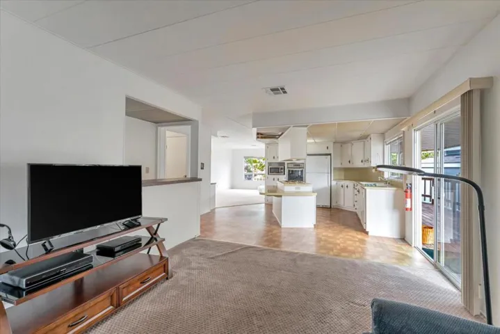 New LOW price! Make this home shine, with all of your touches!!This is a “lease land” park, monthly space rent $4763, and NO property taxes, for a home steps away from the ocean, situated on the lagoon,w/views of the water,f ountain, walking bridge, trails,& more! Enjoy the natural beauty,& wildlife right from your deck/living room. Great natural light flood this home throughout. The over size deck is great for outdoor living as well. The large living room has neutral carpet & bookshelves.The nearby dining area, has built-ins to display your nice pieces/serve your guests. The kitchen has an Island w/ a cooktop & is open to your family room. There is even a “bar area” to serve up some cocktails for your company!The 2 bedrooms are good size,ea have a bathroom connected.The laundry room is located near your kitchen for added convenience & has an exterior door for easy access.Deanza Mobile home park is situated on the Pacific ocean.Meandering streets,w/ lush landscaping lead you to the ocean,fun walking trails,a beach, and so much more. The Clubhouse offers a large area for events,& equipped w/ a chef’s kitchen.The gorgeous year round heated swimming pool is warm everyday of the year,jacuzi,sauna,outdoor kitchen,gas fire pit,a workout facility,all included to use at no extra cost.