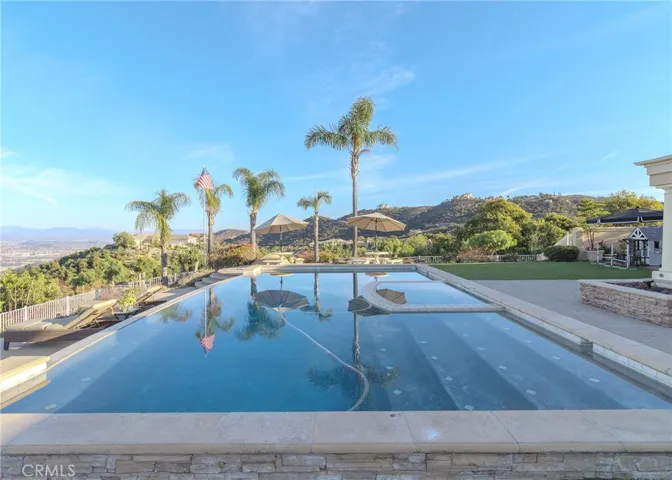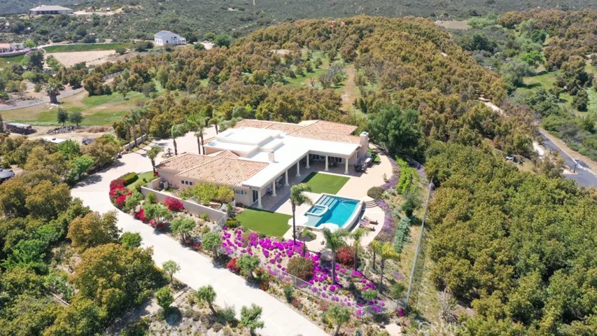 EXCEPTIONAL VALUE!!! Welcome to your gorgeous and stunning views estate; Nestled behind the private, secured iron gates; Grand entrance to the beautiful tree-lined drive way to the circular motor court greeted with fountain and front entrance of this spectacular home. This expansive single-story located in the prestigious sought after community of La Cresta in the City of Murrieta. Over 5 acres fully fenced of all useable land; Surround with a producing Avocado Grove, beautiful lush gardens, roses, orchards, play grounds; Horse Corral for Equestrian Potential; Extra pads ideal for add a guest home or more future improvement, endless possibilities. This home has it all …Stylish, Elegance and Architecturally beautiful. Well Maintained with Endless Luxurious Amenities; Impeccable details craftmanship. Gracefully, custom style of more than 5000 square feet of thoughtfully designed of living space; Stunning Grand Entrance with Double Door open and inviting to Beautiful and Functional Floor Plan; High high Ceilings; Formal Living room; Huge and separate Formal Dining room; Chef’s Kitchen, Two Dishwashers, Butler Pantry; Breakfast Family Dining Room Open to the Massive Family Room with Fireplace; Gorgeous crystal chandeliers in living and dining rooms; All bedrooms are huge with en-suite bedroom style convenience for residents and guests; A Library/computer room; a Game Room. Wonderful luxurious Master suite includes a Fireplace, his and her separated vanity, Jacuzzi Tub, Massive Walk-in Closet and a large size office/exercises room. Spacious laundry room with a sink and amber of storage cabinets. The wonderful infinity edge pool and spa are amazing with awesome views of the cities and beyond. An Expansive Coverage Patio Space Outdoor with Stone Fireplace, a Built-in BBQ , Firepit with Large Backyard creating the perfect home to Entertain All Your Guests. Enjoy the gorgeous and perfect place for seeking seclusion, sophistication and convenience, experience the finest of luxury living in this remarkable home.