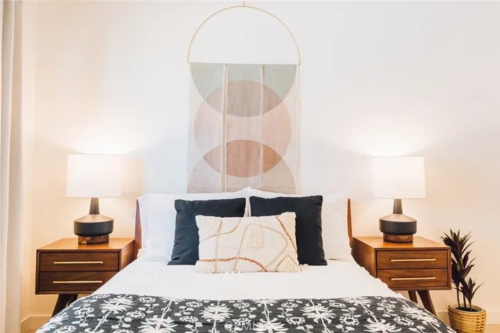Perched atop a hill on a sprawling 19,425 sq. ft. corner lot, this retreat boasts breathtaking 180-degree desert views—the perfect backdrop for relaxation and entertainment. The backyard is a private sanctuary, designed for unforgettable experiences under the iconic Joshua Tree night sky. Enjoy an above-ground pool, hot tub, fire pit, and a row of hammocks—perfect for unwinding. The dedicated yoga studio and meditation room elevate this home into a true wellness retreat. An outdoor shower adds convenience after a day of hiking or lounging in the pool.