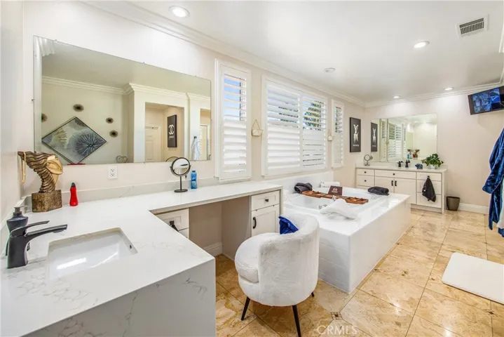Welcome to this 5-bedroom, 5.5-bathroom luxury estate a true masterpiece, offering 5,000 square feet of meticulously updated living space inside and out. Located in the heart of Rancho Cucamonga, this stunning home combines modern sophistication with timeless elegance, perfect for both grand occasions and intimate, elegant evenings. Recently painted with a spanish style smooth finish exterior, the home boasts high-end finishes throughout. Venetian plaster ceilings, crown molding, and new light fixtures are just a few of the exquisite details that define the interior. The gourmet kitchen is every chef’s dream, featuring top-of-the-line KitchenAid appliances. Every bedroom is en-suite, providing privacy and comfort for all. The home also features a newly installed HVAC system, ensuring year-round comfort. Additional upgrades include paid-off solar panels, an electric vehicle charging plug, and a lush landscape with over 50 palm trees, creating a serene and private environment.Located within distance of the highly-rated Etiwanda High School, this carriage modern estate provides not only luxury but also convenience. Whether hosting a grand event or enjoying an elegant evening, this home offers the perfect setting for every occasion.