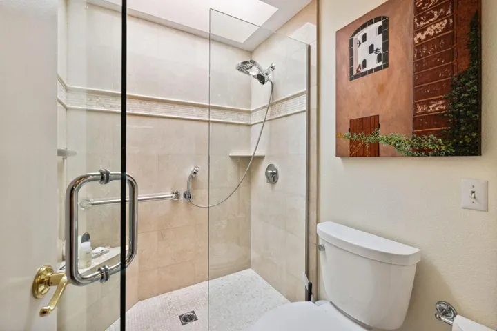 A RARE FIND, A FENCED YARD/PATIO. DOG-FRIENDLY. Currently the LOWEST PRICED ONE STORY WITH A 2 CAR GARAGE, Highly sought after Ironwood neighborhood. The larger condo across the street is sold, offered around $1.66M. This delightful, private 2 bdr. 2 bath is adjacent to open space on the left side. The guest bedroom was expanded to enclose an atrium and accommodates an office/desk area. All the comforts of home, here. Pantry, TV in the kitchen, newer refrigerator with water dispenser, a wine cooler, and there is a wet bar, NEWER shutters and NEWER sliding doors and windows. NEWER A/C. Offered fully furnished, turnkey. Everything stays. Classic floor plan with eating area off the kitchen plus a dining area. This well maintained home gives the opportunity to upgrade, if desired. The PRIVATE patio is exceptional with a fire pit and built-in BBQ.. Seller is an executer/trustee. Easy to show, vacant.