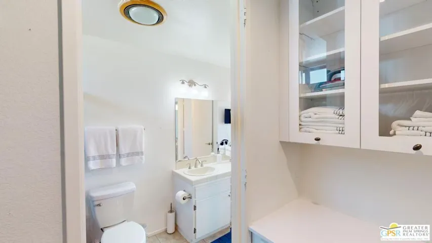 Please note: Due to an unforeseen event, the seller is unable to sell the property with the utilities – electricity and water on, so the buyer will not be able to complete a typical inspection. Unfurnished 2 bedroom, 2 bath condo in the highly desirable guard gated Desert Princess community! Enter through the front courtyard into the main living area. The entry flows into the spacious living room flanked on both sides by the two large ensuite bedrooms, allowing privacy for you & your guests. Both the primary and guest bedrooms offer ensuite baths with dual vanities and lovely stall showers – the primary bath offers access from the bedroom and the hall. The primary bath also includes a spacious closet. The living room features a ceiling fan & slider to the covered, east facing patio – please be careful – the actual opening slider has a broken exterior pane that needs to be repaired. Unique to this condo are the beautiful pond views with wildlife galore. Golf course views to the east of the pond are awesome and what a great covered patio to sit under and have your morning coffee as the sun rises and greets you! Both ensuite bedrooms offer access to the covered east facing patio as well. There is the stacked laundry in the closet next to the foyer.