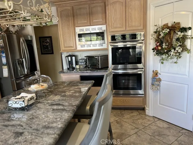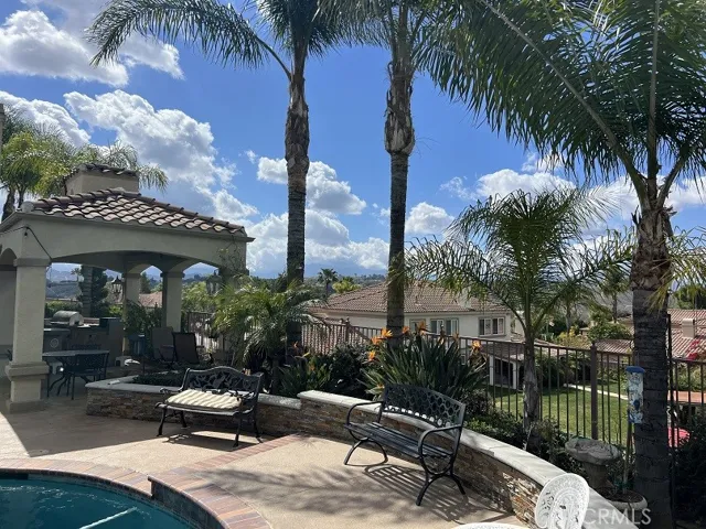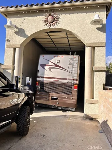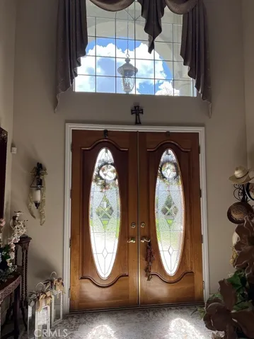 Start living your dream in this paradise that embraces comfort, luxury, tranquility, and elegance. Ideally planned on a quiet Cul-De-Sac with breathtaking views of summer sunsets, and mountain views. Property entrance with a custom automated iron gate with secure digital and remote access. Extra-long driveway for multiple RVs and a Grand RV garage large enough for a 42-footer RV. Landscaped with meticulous care and drought resistant plants in the front, and grass in the back for children to play. Mature trees and fruit trees throughout. Elegant entrance with exquisite double solid wood doors and ceramic tile floor throughout first floor. Spiral elegant wood stairway casing professionally crafted in the front and a 2nd stairway access in the back for casual access or service access. Inviting formal living room with cathedral ceilings and luxury chandelier lighting. Mediterranean style formal dining room, Classic grey granite counter tops over oak kitchen cabinets. Kitchen equipped with double stainless-steel ovens, microwave oven, dishwasher, food warmer, stainless steel stove, and a separate ice maker. Plantation shutters throughout the whole house and some rooms with custom window decorations. Chandeliers and ceiling fans. Burbon carpet and professionally installed ceramic tile. 6-inch baseboards and crown molding throughout the home. Purchased 47 solar panel system that generates enough electricity to power the entire estate at an estimated savings of 85%. Intercom system, dual ac units with their own thermostats, central vacuum system, and alarm system. 3 of the 5 bedrooms have their own private bathrooms. The inviting outdoor living comes with an extra-large custom pool with remote controls that can be operated from inside the house, beach entrance, Spa, decorated with a waterfall and a kiddie pool. The patio, barbecue, and fire pit were designed to entertain large groups for summer and cold nights. The extra-large RV garage was designed with great architecture for large motorhomes with large amperage for sustainable recharges. And do not forget the horse stalls for the modern cowboys that love comfort and country living combine in the same paradise. Large office room with separate access that can be used for work or play. Enjoy the NO HOA and no Special assessment restrictions. All of this and more in the prestigious area of Wood Crest.