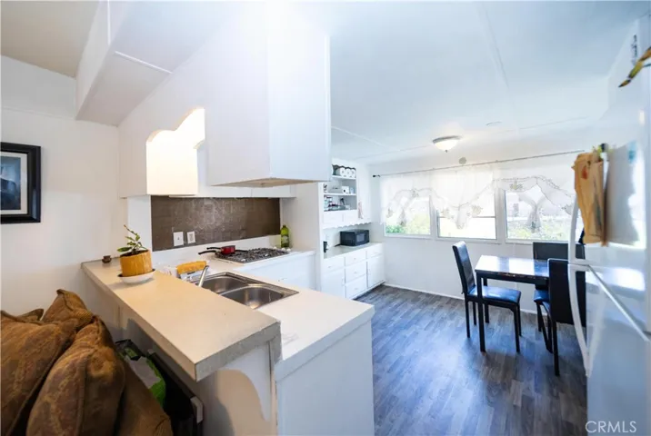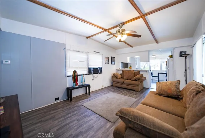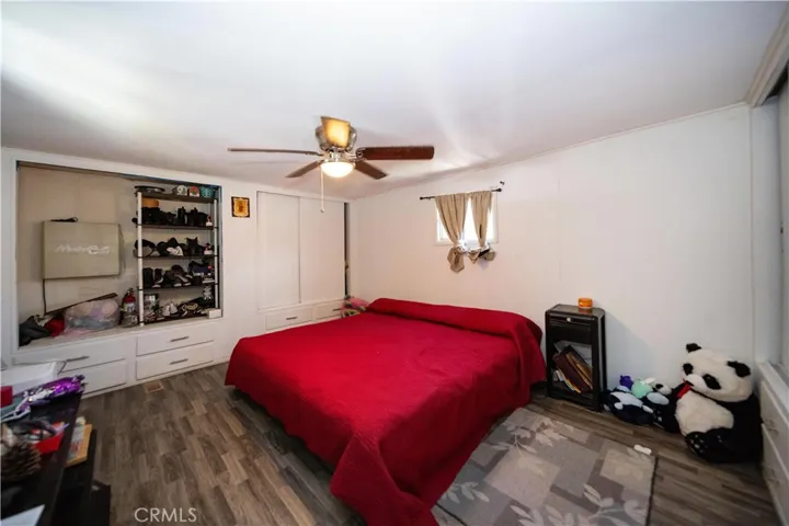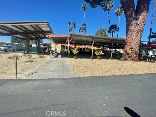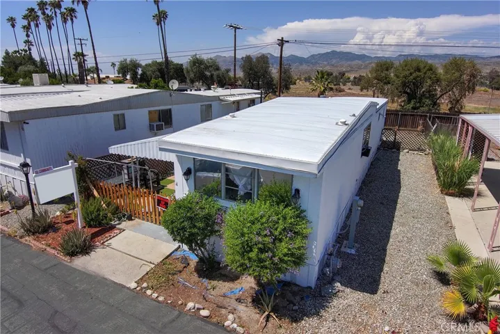 This cozy home is situated in a 55+ gated community! There’s a gate as you come through the side covered porch. Also has turf and big tiles. The lot is fenced from the side porch to the back of the house. The washer and dryer are on the side of the house under the car porch. As you walk inside the well kept home, you will see a good sized living room. The entire house has laminate flooring. If you go left, you will find the spacious Main Bedroom a king sized bed can fit in it. The bedroom has four closets and Fourteen-built-in drawers for storage. The bathroom has a vanity, tub surround and doors with handles. Then you can go see the kitchen with lots of storage and has plenty of room for a small dining table. There’s plenty of space to put barstools at the bar. Behind the house you will see a large lot and two sheds. It’s close to the community clubhouse, pool and spa. This property is close to shopping centers and not too far from the beautiful town of Idyllwild. Don’t miss out on this home!!