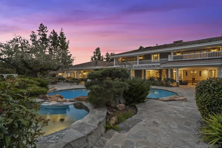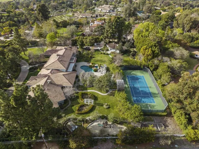 Located in the prestigious Rancho Santa Fe Covenant, this stunning custom lake house offers a unique blend of luxury and tranquility. The property is set on 3.05 acres beautifully landscaped, gated grounds, featuring a serene lily and reflecting lake upon arrival. The main house welcomes you with a spacious living room, family room, and a dedicated dining room. A gourmet kitchen, butler’s kitchen, and full bar cater to all your culinary and entertaining needs. The first floor also houses three elegant bedroom suites and a large library with a secret office. Ascending via a grand staircase or elevator, the second floor reveals two luxurious master suites, each with private verandas overlooking the lush gardens. The 2 bed 2 bath detached guest home can adapt to your personal needs. Outdoors, enjoy a pool with spa, fireplace, tennis court, kids playground and more. The estate is adorned with fruit trees and features a veggie garden, offering the perfect blend of recreation and relaxation. Conveniently located near the RSF Village, the property provides easy access to top amenities such as the RSF Golf and Tennis Clubs and Roger Rowe School.