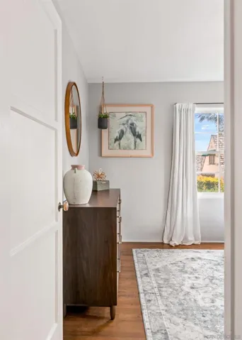 Welcome to this 2BR/1BA coastal retreat in a vibrant beachside neighborhood, perfect for relaxation and exploration. Enter through the front door, up four steps, into a cozy living room with a record player, plush couch, and flat-screen TV. The kitchen is fully equipped with a gas oven, air fryer, crockpot, and a dining table for four, with a large window overlooking the beautiful backyard. Note: no dishwasher. Down the hall are two serene bedrooms: one with a king bed and the other with a queen bed, both with ample closet space, ceiling fans, flat-screen TVs, and soft natural lighting. The full bathroom offers standard amenities. Step outside to a private backyard oasis with a hot tub, outdoor seating, propane BBQ, putting green, hammock, outdoor TV, and a wood-burning fire pit (wood not provided). An outdoor shower is perfect for rinsing off after a beach day. Located just blocks from the ocean, the home stays cool with coastal breezes. Free parking is available, and there’s a washer/dryer in the outdoor patio closet. Sleeping Accommodations (Max 4): Bedroom 1 – King bed Bedroom 2 – Queen bed 1 full bathroom. STR- 11105L TOT-640540