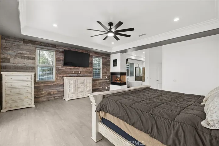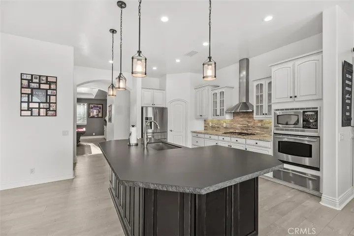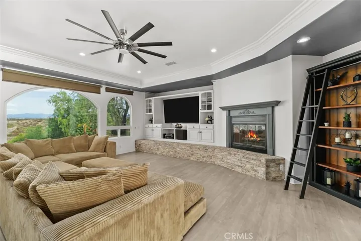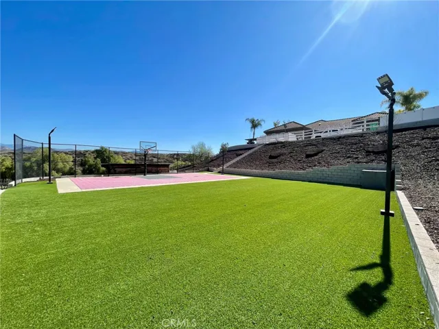 Passing by several of Temecula’s most esteemed wineries on Rancho CA Rd and then proceeding onto Calle Contento N you will arrive at this remarkable gated single-story residence with stunning views at the end of a cul-de-sac in the heart of Temecula Wine Country. As you walk through the front entry doors you are greeted by a captivating view of the pool and the rolling hills setting a tone of elegance that permeates the interior.The infinity-edge pool with a sun shelf and spa overlooks the rolling hills behind the property and a built-in fire pit provides warmth and a cozy ambiance under the star-filled sky making it an ideal spot for evening leisure.The family room features a custom built-in entertainment center and fireplace. The open floor plan seamlessly connects the family room to the kitchen providing a spacious and inviting area for family and friends to congregate.The built-in BBQ area boasts two large granite bars, high-top seating, and two mounted outdoor televisions under a covered Aluma wood awning that overlooks your working vineyard and an assortment of fruit trees, creating the perfect setting for outdoor gatherings and celebrations.For the ultimate movie-watching experience, the fully equipped high-end home theater is furnished with luxury staged theater seating ensuring that you can enjoy films in style and comfort.The master bedroom and spacious bath share a cozy fireplace and feature a large walk-in closet with custom cabinetry and a central island.Three of the four bedrooms are equipped with en-suite bathrooms, providing convenience and privacy for family members or guests. The fourth bedroom is currently utilized as an office with a double door entry.For car enthusiasts, the 6+ car garage offers ample space for your collection. One of the 2-car garages is equipped with a tall (RV-sized) entry door, perfect for installing a car lift or additional storage.This magnificent estate offers ample space for RVs, off-road vehicles, boats, trailers, and more. The property also features a lighted sports court suitable for basketball, pickleball/tennis. There is a flat turf area with plenty of room for outdoor games. A she shed offers an ideal solution for hosting guests or providing a private retreat. With its private entry and situated to overlook the sports court and vineyard it ensures visitors can enjoy the tranquility of wine country alongside the excitement of outdoor activities. Features a living room, bedroom, full bath and kitchenette.
