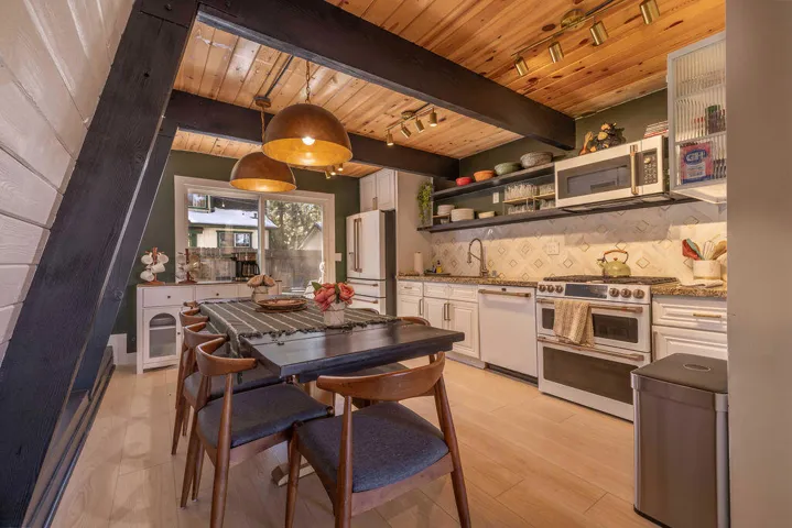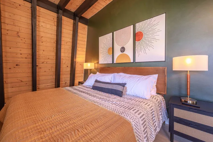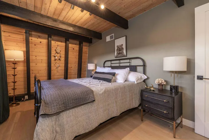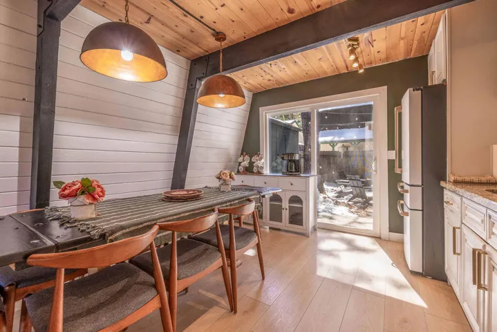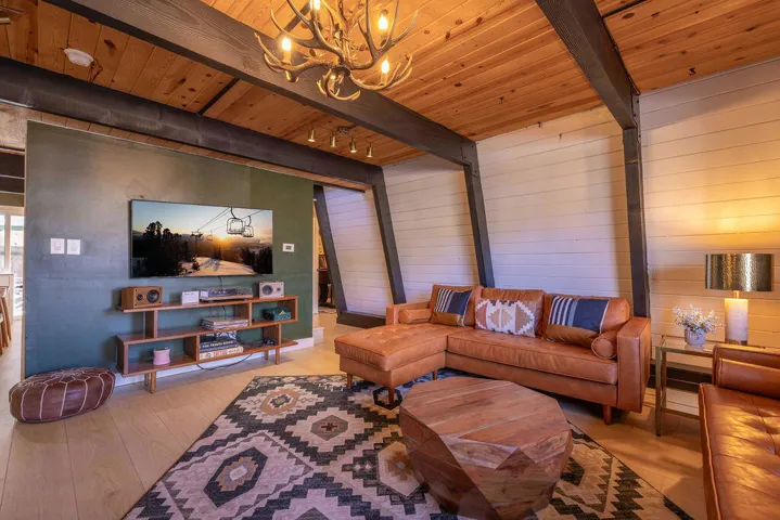 Turnkey, completely renovated, 2,189 square foot, 5 bedroom, 4 bathroom modern luxury cabin nestled in the heart of Moonridge. Ski and snowboard enthusiasts rejoice in this premium location just minutes from Bear Mountain and Snow Summit Resorts. Just a short distance to the rapidly developing Moonridge Corridor. This home is in a premium location, accessible to entertainment, dining, and shopping all year round. Less than 5 minutes away, you can enjoy the proximity to Big Bear Marina, grocery and convenience stores, parks, and picturesque hike/bike trails. This professionally designed home invites you to experience sheer luxury and comfort, with a private wooded backyard featuring a soothing hot tub and fire pit with seating for 8, perfect for unwinding under the starlit skies or the ambiance of warm string lights amongst the trees. A fully stocked game room and arcade with a foosball table beckon lively evenings with friends and family. A chef’s kitchen includes GE premium Cafe appliances and luxury finishes. Extra-large living room with an incredible custom fireplace, available with genuine leather sofas, a record player, and a 55” 4K TV with Apple TV, ensures every moment is one of leisure and entertainment. Retreat to two king-size bedrooms, two queen-size bedrooms, or a versatile bunk bedroom/game room- each space is meticulously crafted for comfort. Laundry area equipped with a newer Samsung front-loading washer and dryer. Newly painted interior and exterior, brand-new furnace, two new water heaters. Beyond its allure as a second home, this property holds the advantage for those seeking a short-term rental, offering an enticing investment opportunity.