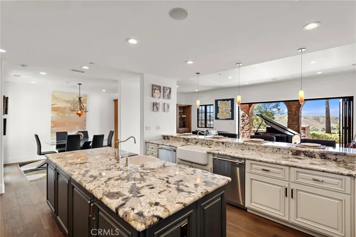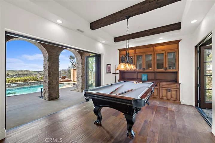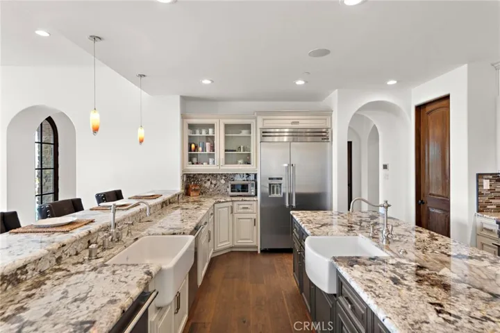 Enjoy the rewarding lifestyle you aspire to at this rare custom estate sequestered on a cul-de-sac behind the guarded gates of Covenant Hills at Ladera Ranch. Positioned on a large homesite to take full advantage of its expansive hill, valley and Boundless California Sunset Views, the distinguished five- bedroom, five- and one-half-bath residence extends across approximately 5200 square feet.  Nurtured to Perfection Through Imagination & Appointment, Come Marvel as You Step Back in Time Through the Iron Gates to Quarried-Rock Walkways Lined with Olive and Citrus Trees & Tranquil Water Features. Unparalleled Custom Amenities: 5 En-Suite Bedrooms, Separate Detached En-Suite Casita, Exquisite Great Room Overflowing to Brick & Stone Archways Accented w/ Sand Blasted Wood Beam Loggias, Bi-Folding Doors to Seamless In-Door / Out-Door California Living, Raised Jacuzzi w/ Tahitian Plastered Salt Water Pool, Superb Kitchen w/ Dual Farm Sinks & Dishwashers, Custom Fit Thermador 48″ Refrigeration & Ovens, Generous Island & Hand Finished Cabinetry, Quarried Rock Bar Open to Amazing Great Room Accented w/ Built-In Book Case, Distressed Wood Floors Throughout, 8 Zone Surround Sound w/ Whole House Monitoring & Single App Control & Warming Fireplace. Primary Suite w/ French Door Walk-Out Patio Finished w/ Quartz & Iron Rails, Primary Bath w/ Unsurpassed Limestone Finishes & Luxe Dual Motor Jacuzzi Tub, Secondary Bedrooms Each Outfitted w/ Quaint Balconies & Finished Closets. Don’t Miss This Opportunity to Embrace a Rare CA Lifestyle In Gated Covenant Hills.