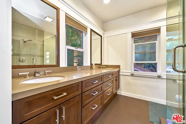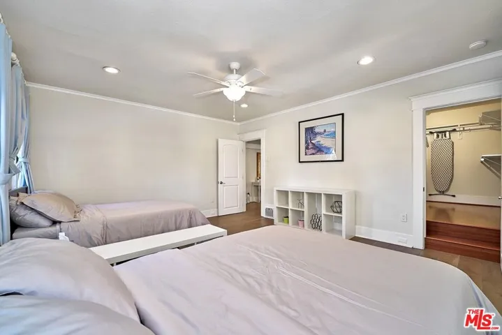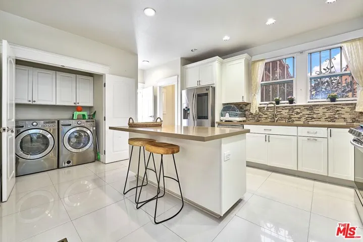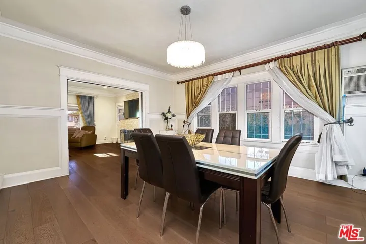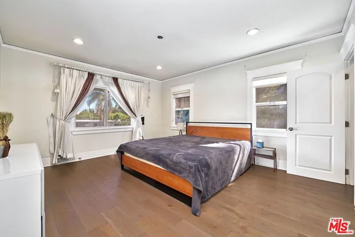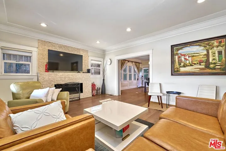 Welcome Home to a quiet charming neighborhood in Hancock Park. Great night city view! Close proximity to Hollywood and Downtown, LA. Walking distance to local schools. 3 Bed. & 3 Baths. Master bed has spacious walk-in closet, with double-sink bathroom. Formal dining room, kitchen with centered-island with lots of cabinetry & storage. Steel appliances all included. Dual-paned windows. Customized curtains & blinds. Windows have security metal bars. Built-in fireplace. Big backyard with wooden deck. Auto gate drive way – 2 cars can park in the garage, or can be used as gym/misc. & ceiling fans in garage! Ample parking spaces for guests; additional 4 to 5 parking spaces inside the gate. Convenient living for big-sized family. Automatic sprinkler system. The property is in a HPOZ (Historical Preservation Overlay Zone). Enjoy the spacious backyard and multiple car parking spaces.