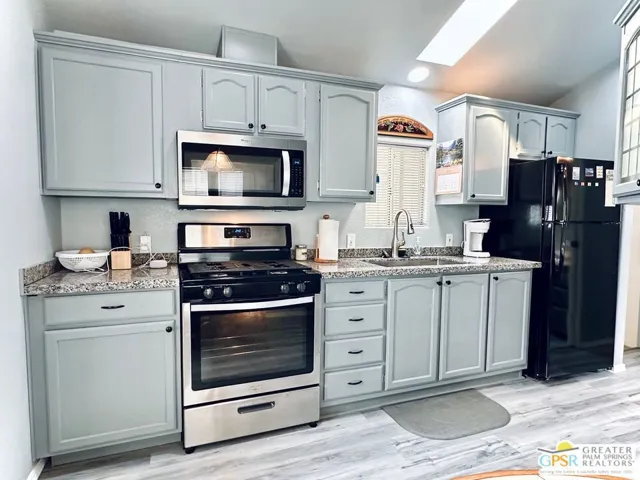 This beautiful Tiny Home, situated in the highly sought-after Desert Shadows RV Resort, has been completely remodeled from top to bottom and wonderfully updated. This rare 3-bedroom (one of the rooms is a California room, 2-bathroom park model home with a California room offers an exceptional opportunity for resort-style living in Cathedral City, just minutes from Palm Springs. Unlike most park models that feature only one bedroom and bath, this beautifully remodeled home has been thoughtfully upgraded with brand-new appliances, sleek flooring, and the convenience of an in-unit washer and dryer. The California room adds valuable extra space, perfect for a home office, den, or additional entertaining area.Desert Shadows is a gated 55+ community known for its impressive amenities, offering residents a low-maintenance lifestyle with premium TV, high-speed internet, water, trash, recycling, and landscaping services included. With six pools, including an indoor Olympic-size lap pool with a spa and sauna, as well as five additional outdoor pools, there are plenty of opportunities to soak up the California sunshine. Active residents will enjoy the sunken-lit tennis and pickleball courts, an indoor shuffleboard pavilion, and a fully equipped fitness center. The community also boasts two large clubhouses and three satellite clubhouses, providing a vibrant social scene with organized activities, hobby rooms, and a library with Wi-Fi. A woodshop, putting green, picnic areas, and a 1,600 sq. ft. ballroom ensure there’s something for everyone.This is a rare find in one of the Coachella Valley’s premier active adult communities. This beautifully updated home is ready for you to enjoy. Schedule your showing today and experience the best in desert resort living!