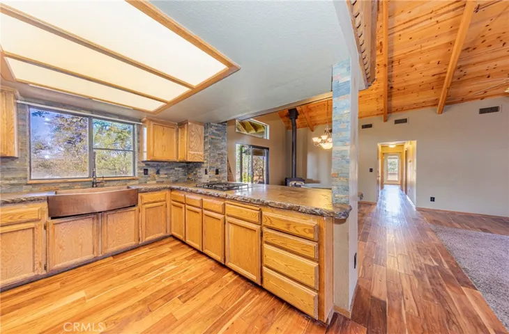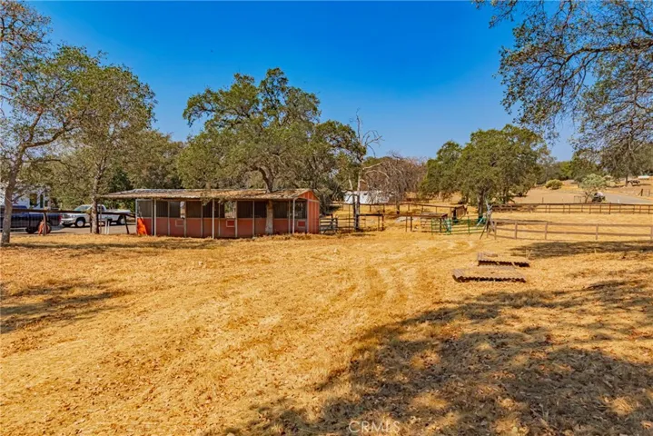 Hobby Horse Ranch on 2.5 acres, fenced and crossed fenced. Coarsegold, partial A frame, Advanced Home, western theme. Beautiful custom kitchen with copper sink, Shiplap master bedroom. Custom concrete kitchen counters. There is a loft would be a great kids play area. Newer wood stove