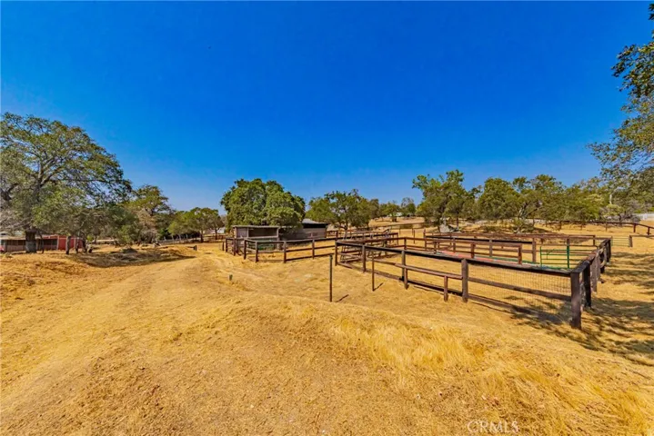 Separate hay barn, separate 3 stall barn with pass thru doors, nice size arena, horse wash station, tack room. 2 large open stalls. Mature fruit trees, chicken coop, cat house, and some lovely landscaping all on a corner lot. Plenty of room for RV