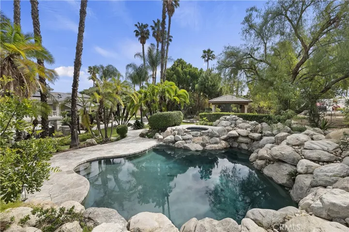 DISCOUNTED PRICE for quick sale including 2 parcels, with a motivated seller! Rare estate opportunity in one of South Corona’s most exclusive, seldom-traded neighborhoods featuring wide streets, long-term ownership, and no HOA. The residence sits on an approximately 24,394-sq-ft lot, with an additional 37,026-sq-ft lot included, creating a combined estate of approximately 61,420 sq ft (±1.41 acres) and a commanding double-lot presence with exceptional flexibility.The 5,008-sq-ft, 4-bedroom, 4.5-bath home offers timeless architecture and resort-style living. Numerous key improvements have already been completed, including new exterior paint and stucco, new HVAC, new wood flooring, new pool filter and heater, and a new theater projector, allowing remaining updates to be largely cosmetic.