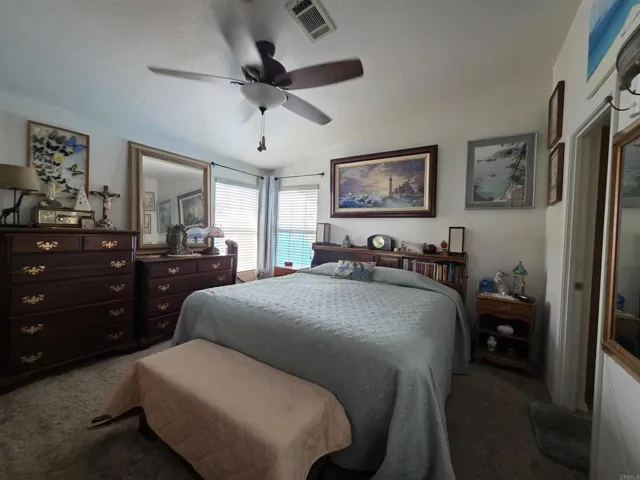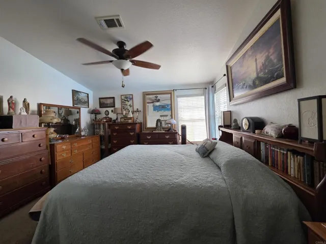 What a beauty in the Rancho Mesa 55+ community on the border of Santee and El Cajon!!! It is not often you run in to a beautiful large, roomy home with a 2 car attached garage in a park!!! Central air, vaulted ceilings, huge garage, fully fenced backyard, pet friendly park, primary suite and a huge sitting porch that is just perfect to watch the sunrise on!!! Check this home out before opportunity passes you by!!! Rancho Mesa is a gated community and has a community pool, jacuzzi, clubhouse, BBQ park and park area. Close to the 67, 8 and many stores and conveniences!