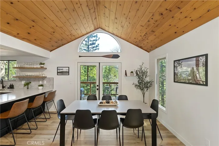 Step into your dream getaway! This exquisite mountain cabin has been completely remodeled top to bottom, inside and out! Conveniently situated in Arrowhead Woods, this property includes lake rights, is a plowed & maintained road and comes fully furnished, decorated & equipped, making it ready for you to enjoy right away! Surrounded by towering pines providing gorgeous forested views from every window! All New kitchen, baths, paint, flooring, decks, trim… You name it, it’s been done! Starting with fun Dutch front door that welcomes you into a bright open-concept living and dining area. Marvel at the gorgeous tongue-and-groove ceilings that exude warmth and sophistication, complemented by a modern fireplace and accent wall for a cozy yet stylish atmosphere.