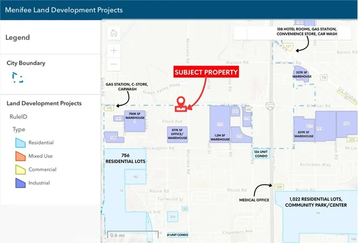 NOT ACTUAL PRICE – PLEASE SUBMIT YOUR PROPOSAL INCLUDING your USE and RATE and TERMS for 1 – 4 Acres Available For Ground Lease. Watch aerial video! Prime commercial land or heavy industrial land development opportunity strategically located at the intersection of Ethanac Rd. and Murrieta Rd. in Menifee, just 4 blocks off Exit 14 on I-215 with large retailers like Home Depot, Starbucks, AutoZone, Winco Foods and more. With proximity to the nation’s busiest port system, Ontario Airport, UPS & FedEx Ground Hubs and BNSF, this location offers unparalleled visibility and accessibility. The Economic Development Corridor – Northern Gateway (EDC-NG) zoning positions this property as a key player in a fast-growing warehousing and heavy industrial area of Menifee. Planned as an employment hub, the city welcomes visionary owners to spearhead business park development and industrial ventures, creating jobs and connectivity to regional transportation corridors. Benefit from the City of Menifee’s $130 million investment in capital improvements, enhancing roads and traffic circulation. The planned extension of Ethanac Rd. to connect to CA-74 will significantly elevate the traffic count to 30,000+, bringing even more visibility to this major intersection. Nearby are the Perris Logistic Centers with 4 million sq ft of rentable space, and a 28 acre industrial warehouse facility a block away, Seasons by Green Valley Ranch new construction housing development is across the street, as well as hundreds of current and proposed corporate neighbors in Perris, Moreno Valley and Menifee. Improvements on the land include a 1,972 sq ft single story home with 4 beds and 2 baths. The current tenant is very clean and cooperative, pays on time and would like to stay and continue taking good care of the property until it is ready for development. Utilities include water, gas, and electricity. Sewer is available at Murrieta Road and Kuffel Road and just needs to be connected. Don’t miss your opportunity to be a part of shaping Menifee’s flourishing economic environment!