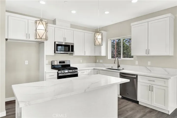 Welcome to this beautifully crafted single-level home blends modern luxury with exceptional functionality. This new construction home is turnkey and ready to move in. This home includes and owned solar system through Revamp solar with 8 panels (3.2kw system). Upon entering, you’ll immediately be drawn to the custom electric fireplace, creating a cozy and inviting ambiance in the living area. The thoughtfully designed layout and premium upgrades throughout offer the ideal living space for those seeking both comfort and style. The open concept kitchen is a true highlight, featuring sleek quartz countertops, a huge island perfect for both cooking and entertaining, and high-end stainless steel appliances. The elegant shaker cabinets with soft-close drawers add a touch of sophistication, while the pendant lights above the island enhance the atmosphere with their contemporary flair. The primary bathroom is a standout feature, with a stunning quartz shower enclosure that adds both style and durability. The bathrooms also feature quartz countertops, while the luxurious, waterproof luxury vinyl plank flooring runs seamlessly throughout the home, offering durability and easy maintenance while maintaining a stylish look. The primary bedroom is a true retreat, featuring not one, but two walk-in closets for ample storage space. You’ll appreciate the energy-efficient dual-pane windows throughout the home, which help keep the space comfortable year-round. This home is perfect for anyone who enjoys a blend of modern design, high-quality finishes, and thoughtful upgrades. This home is also fire safety rated, equipped with fire sprinklers and fire-rated shingles and siding, providing an added layer of protection for your peace of mind. Paradise Pines Property Owners Association a short drive to the clubhouse with association amenities including the clubhouse with meeting rooms & library, 2 event centers with full kitchens, full bar & lounge at clubhouse, tennis courts, bocce ball court, children’s playground, hiking trails, swimming pool & spa and so much more!