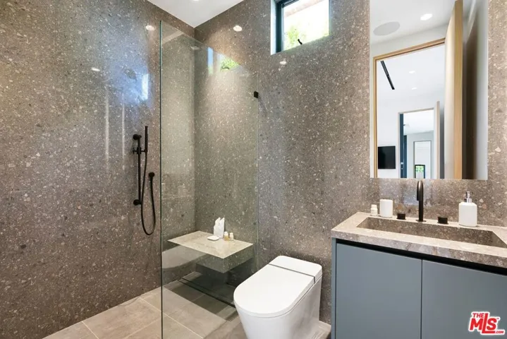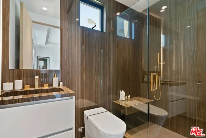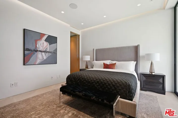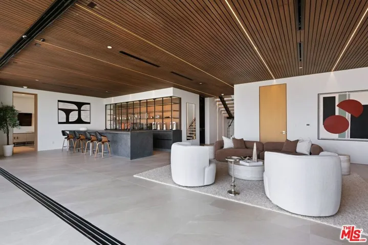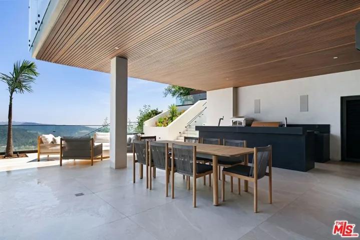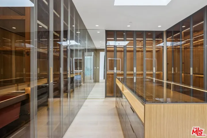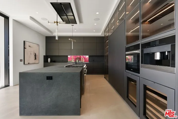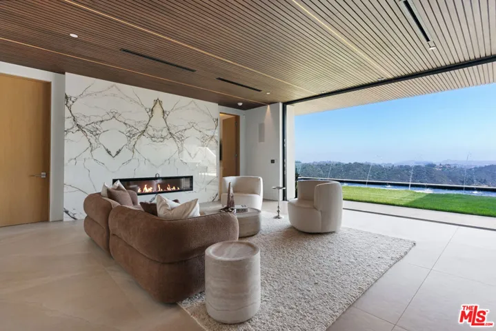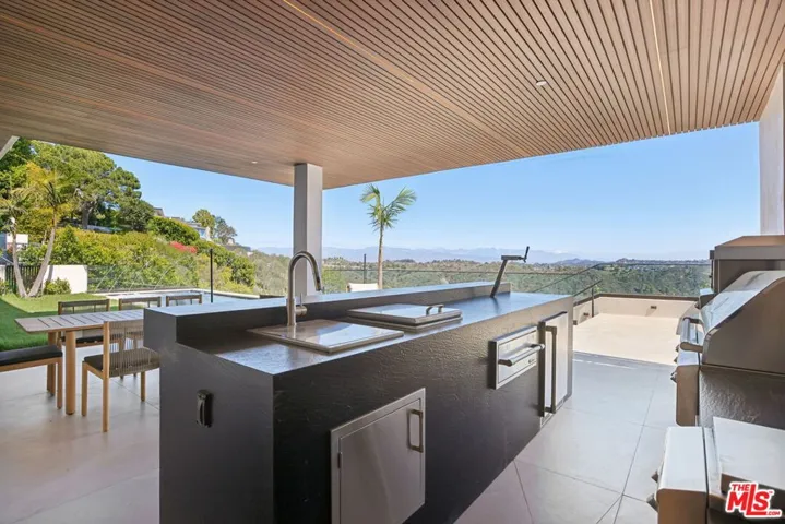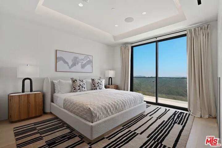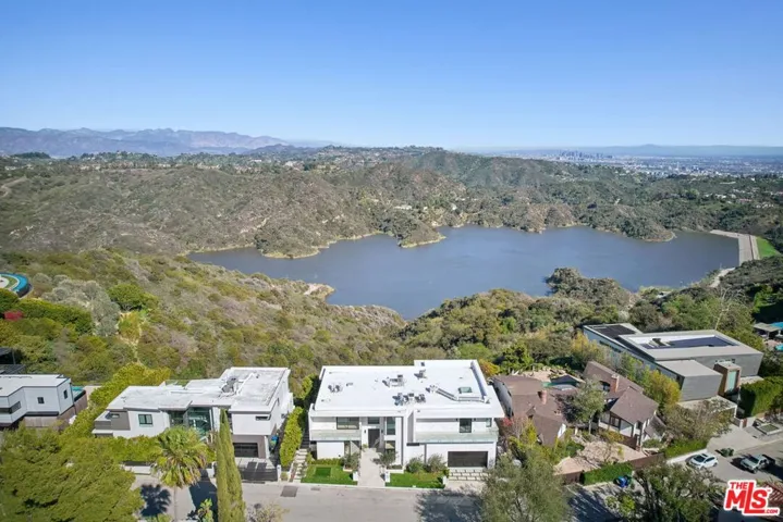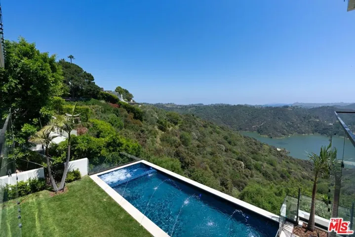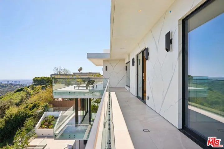 Immaculate contemporary new construction offering breathtaking panoramic views of the reservoir and Downtown LA. The impeccable quality of finishes and thoughtfully crafted design elements throughout accentuate the setting and the picturesque vistas. Enter into an expansive, open-plan living room with soaring ceilings, where large glass walls and doors seamlessly open to blend the interior with the stunning natural surroundings. The main level features a living room with an elegant marble wall fireplace, a family area, a formal dining room, a fully equipped kitchen, and a butler’s kitchen, all outfitted with top-of-the-line appliances, as well as a guest bedroom. On the upper level, the primary suite awaits, complete with a large wraparound terrace that overhangs the breathtaking vistas, a marble fireplace, generously sized dual luxurious closets, and bathrooms adorned with the finest stone finishes. The north wing of this level houses three additional bedrooms, each with en-suite bathrooms, along with an upstairs laundry room.Take the elevator down to the lower level, where you’ll find a state-of-the-art movie theater, an entertainment area featuring a large bar and a temperature-controlled wine wall, a gym, and two additional bedrooms. Floor-to-ceiling, automatic pocketing doors open to an outdoor kitchen and dining area, complemented by a stunning pool, spa, and yard that overlooks the reservoir.This is a rare opportunity to acquire a premier piece of real estate in Bel Air, offering unparalleled views and exceptional craftsmanship on an expansive lot of over an acre.