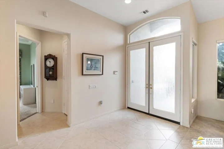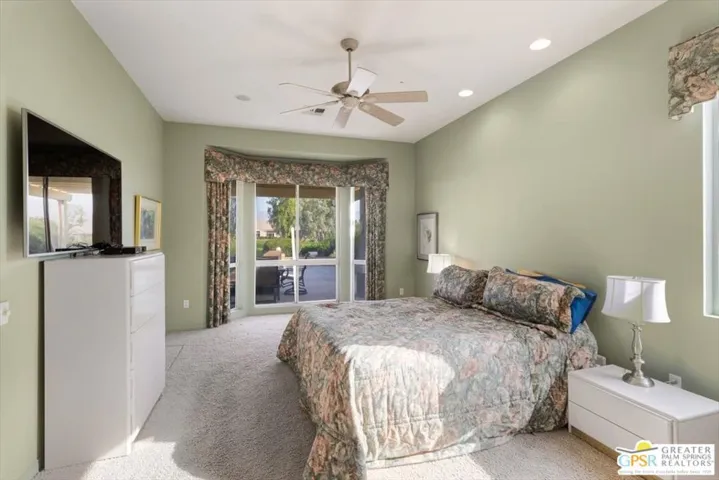 $50,000 price reduction! San Remo plan on the Golf Course with Fabulous Views of the 4th Green and 5th Tee. Views of 3 Mountain Ranges-San Jacinto,San Gorgonio and Chocolate Mountains. Open floorplan with floor to ceiling windows showcasing the Golf Course. Chef’s Kitchen features Built in Double Oven, Granite Counters, Pullout Drawers and Reverse Osmosis Water System. Good Size Master Bedroom with Large En-Suite Bath. Bath includes Large Tub, Shower, and Large Walk-In Closet. Great Separtion of Bedrooms. Guest Bedrooms are on other side of home from Master. Ceiling Speakers in Family Room, Living Room, Master and Patio. 4 seat professional bar with ice machine ,2 beverage coolers and sink. Diamond Cut ceramic Tile, Custom Entertainment Center, Central Vacuum, and Circulating Hot Water, Alumnawood Pergola, Misting System with compressor, Mini Split in Garage. Rear yard facing Golf Course has extensive decking. Very convenient easy acces to shoppping using Varner Gate.