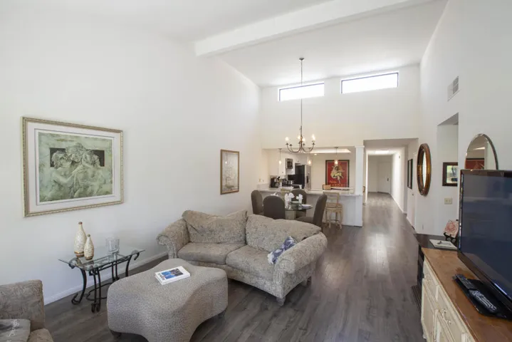 This home is an extended Jacaranda floor plan that is now 3 bedrooms and approximately 1650 sq. ft. The home was recently painted. It is empty now, no furniture! Pictures are from Aug. 2022. The condo is now empty. Nice open kitchen with white cabinets and quartz counters. Newer lights and mirrors were installed within the last 2 years the bathrooms. This condo is on one of the most desirable streets in PVCC, Impatiens Circle and it has a south-facing fairway patio. It’s on the 9th hole tee box of the Championship course.Palm Valley CC has 46 swimming pool, a huge clubhouse, 2 Ted Robinson golf courses, tennis and pickleball courts and a fitness center. This is a wonderful resort like community. Come take a look at your next home! This is a long term lease, 1 year or more.