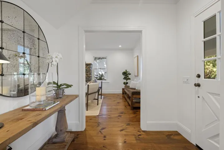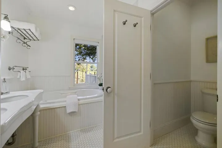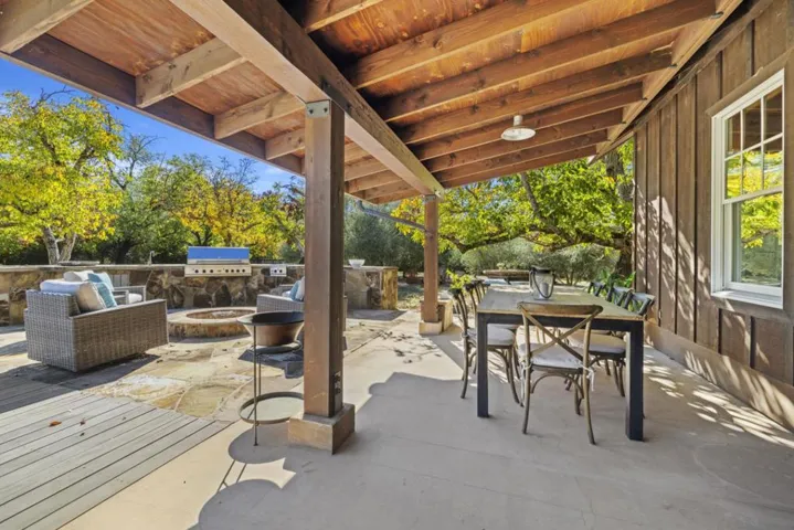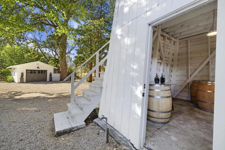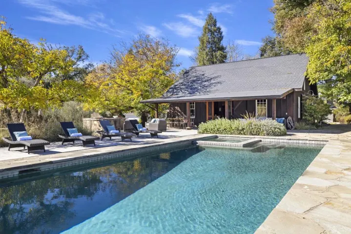 This exceptional Calistoga estate blends Wine Country charm with modern luxury on a flat, park-like setting bordered by Garnett Creek. Surrounded by heritage trees and stunning Palisades views, it offers gated privacy with the convenience of city servicesjust minutes from world-class resorts, restaurants, wineries, spas, and a nearby airport. Perfect for entertaining, the property features a spacious Entertaining Barn with BBQ and firepit, a pool, and multiple outdoor living areas. The beautifully restored Georgian Revival farmhouse includes wide porches and decks, while the original Water Tower now hosts a wine tasting room and yoga studio. Additional highlights: a large underground wine cellar, vineyard with well and tank, olive orchard, pond, ptanque court, gardens, and multiple outbuildings. With five main structures and expansive grounds, the property offers flexible use options including multigenerational living or a potential lot split. A rare and turnkey opportunity!