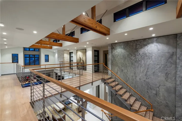 Located on one of Newport Heights’ most coveted streets, “Snug Harbor” is an exceptional custom home conceptualized by renowned architect Chris Brandon and crafted by master builder Pinnacle Custom Homes. This extraordinary residence masterfully blends architectural innovation, superior craftsmanship, and modern luxury. Boasting approximately 7,000 sq. ft., this 5-bedroom, 7-bathroom estate offers an open floor plan with pocketing glass doors and multiple loggias, creating a seamless flow between interior and exterior spaces. A dramatic 30-foot granite waterwall welcomes you, setting the tone for this home’s resort-like ambiance. The gourmet kitchen features top-of-the-line appliances, a walk-in pantry, and a catering kitchen. The private courtyard includes a crushed-glass fire pit, a glass-tiled spa with a fire feature, and a covered loggia with a fireplace. The two-story living area is accentuated by volume ceilings, enhancing the sense of space and natural light. The luxurious primary suite offers a spa-inspired bath with a soaking tub, steam shower, and spacious walk-in closet. A full subterranean level, accessible via elevator to all three levels, features a home theater, gym, wine cellar, and custom bar. Smart home automation includes a Vantage lighting system, iPad-controlled features, surround sound with over 100 speakers, 13 flat-panel TVs, and a state-of-the-art security system. This extraordinary residence is a masterful blend of architectural innovation, superior craftsmanship, and modern luxury.