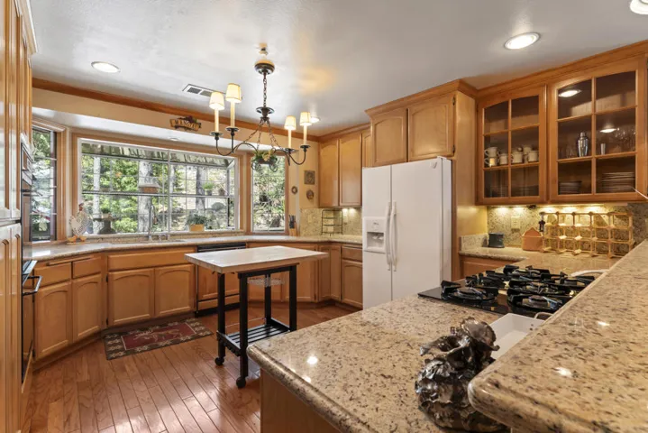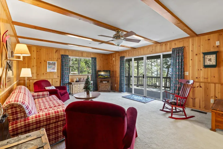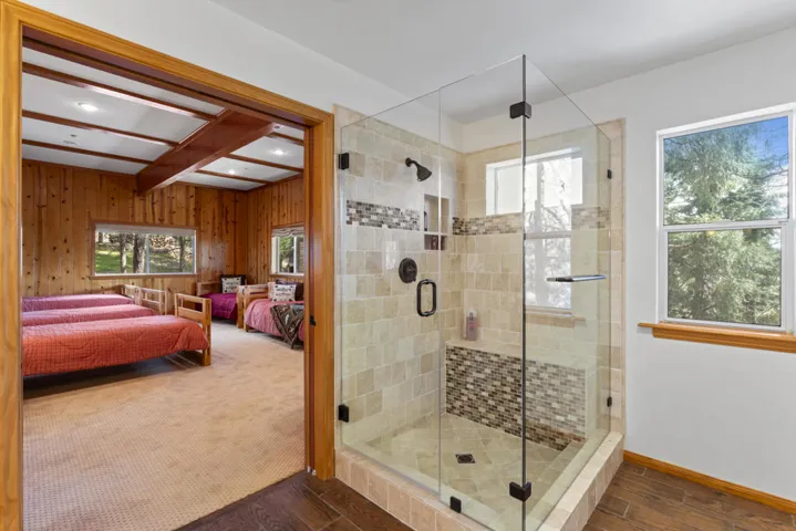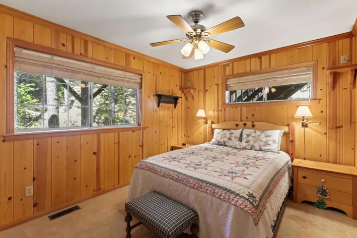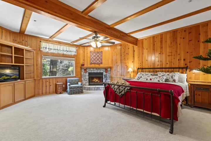Have we priced this too low, that buyers think there must be something wrong? Move-in ready! Experience the ultimate in mountain living with this stunning, remodeled Lake Arrowhead home. Designed with quality craftsmanship and a sophisticated aesthetic, this lodge-style retreat blends luxury, comfort, and breathtaking surroundings.This five-bedroom, four-bath home includes a grand bunk room, comes fully furnished, and offers coveted lake rights. The level entry leads to an oversized two-car garage and spacious driveway. Inside, soaring vaulted ceilings and an open-concept great room feature a river rock fireplace, chef’s kitchen, and dining area with seating for ten. A large Trex deck extends the living space outdoors.The main level includes a bedroom with deck access and a full bath. Downstairs, two family rooms, a luxurious primary suite with a fireplace, and additional bedrooms provide ample space. Expansive decks, a fire suppression system, and a dog run add convenience. Minutes from The Village, this former celebrity-owned home offers the perfect Lake Arrowhead escape.