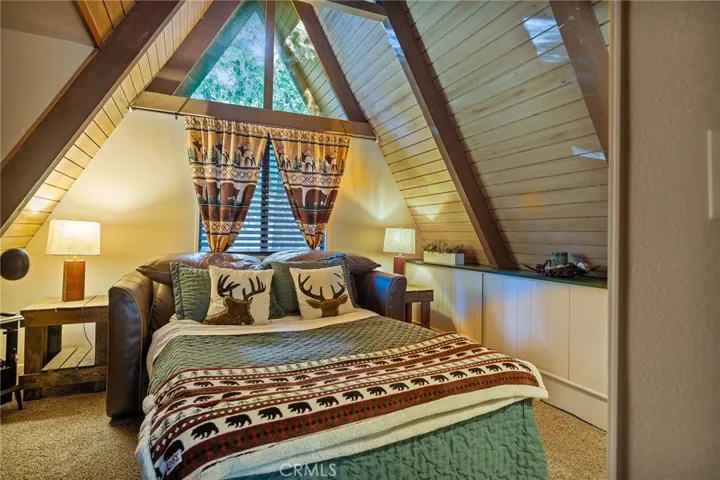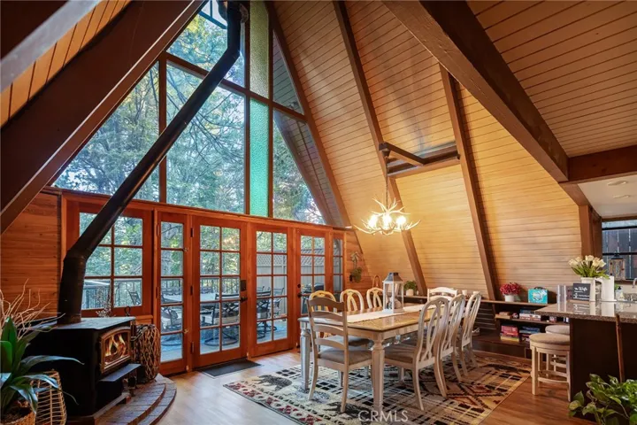 WOW, WOW, WOW!!! Looking for a Super Cool RUSTIC CABIN with a GREAT MOUNTAIN VIBE to Escape to? YOU WILL ABSOLUTELY LOVE this One with it’s A-Frame Windows, Woodburning Stove and Cutesy Mountain Touches Throughout! You Won’t Feel Cramped Here with Five Bedrooms Generously Spaced Apart, including an En Suite Bedroom on the Main Level! The Oversized Family Room is Sooo Dreamy with a Cozy Wood Burning Fireplace and HUGE WINDOWS Everywhere to Watch the Snow Fall! Did I mention Snow? Just a 10 Minute Drive to Snow Valley Ski Resort (Woot, woot!) and 15 Minutes to the Lake Arrowhead Village! The Island Kitchen with Breakfast Bar for the Kiddos has Oodles of Storage Space & Looks out to the Wall of Windows that Opens to the Amazing Back Deck Area! The Decking Runs the Length of the House and Has Multiple Sitting Areas that Overlook the Forest. PERFECT FOR ENTERTAINING!!! So Peaceful and Serene!!!! The 5th Bedroom Has a Separate Entrance Down Below. Recently this Home Has Been a Very Successful Air Bnb, Bringing in Approx $500/night!! Totally Level Entry into this Home too and a Big Backyard Makes this a Perfect Full time Home too! Come & See!!