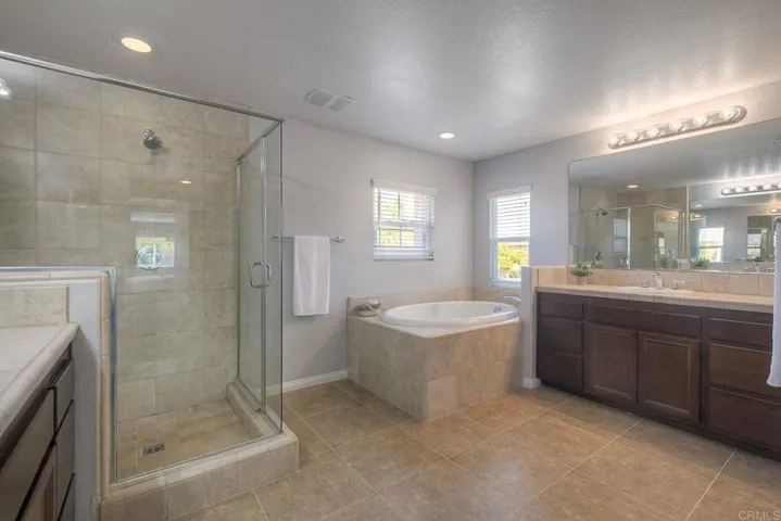 Owned Solar! Welcome to this stunning home nestled in the highly desirable golf course community of Arrowood. Offering 4 spacious bedrooms, 3.5 bathrooms, and 3,238 square feet of living space, this home is the epitome of comfort and style. The open-concept kitchen is a chef’s dream, featuring an abundance of cabinet space, a butler’s pantry, elegant granite counters, a large island, and stainless steel appliances. The kitchen seamlessly flows into the expansive family room, creating an ideal space for family gatherings and entertaining. The luxurious primary suite boasts generous closet space, ample storage, and a large en-suite bathroom with separate vanities and a soaking tub. The Primary bedroom features an additional attached room, complete with a cozy fireplace, which offers the perfect setting for an office or private retreat. Step outside into the serene backyard, where you’ll find a gorgeous concrete table-top fire pit, a built-in BBQ area with a Traeger smoker, a mini fridge, and tropical palm trees surrounding the space. Fruit trees and a massive plumeria further enhance the lush outdoor oasis. Residents of this community enjoy a wealth of amenities, including scenic walking trails, a Junior Olympic-sized swimming pool, a clubhouse, and a tot lot. Arrowood also features the renowned Arrowood Golf Course with its stunning 18-hole course, Top Tracer Golf, Pickleball courts, and the Fairways Bar & Grill, which hosts a variety of events such as live music, trivia nights, and craft fairs. Conveniently located less than 10 miles from the beach, with easy access to the 76 freeway, dining, shopping, and Luiseno Park, this home offers an exceptional lifestyle. Plus, it’s situated within the highly sought-after Bonsall School District. Experience the perfect blend of luxury, convenience, and community in this beautiful Arrowood home!