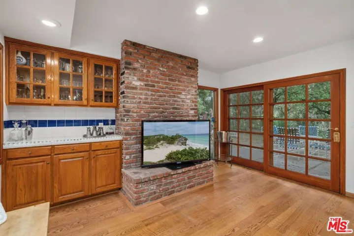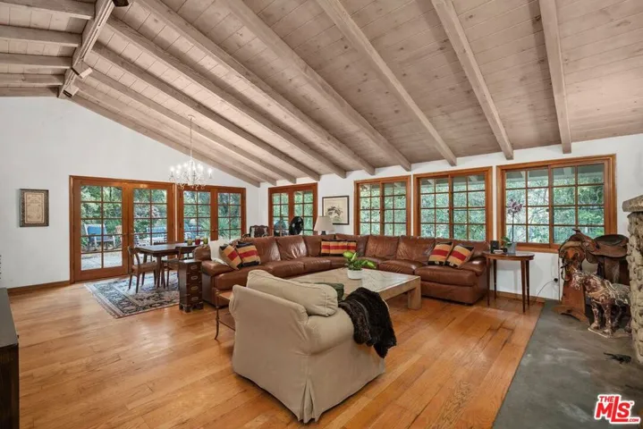 Private single-story horse property in the highly coveted Sullivan Canyon area of Brentwood! Passing the mature fruit trees and 4 horse corrals along the long private driveway, this ranch style house is found among the stunning surrounding canyon. The large open living area features a fabulous stone fireplace, high pitched ceilings, a dining area, and an abundance of natural light. The kitchen offers a breakfast area with a brick fireplace, and sliding doors leading to the expansive back patio, which is draped with the lush greenery of the canyon. The three bedrooms, two bathrooms, and laundry room can be found on the other end of the house down a hallway with tons of additional closet and storage space. A two-car garage and massive driveway provide space for at least 5 cars. With a little TLC to be brought back to its glory days, this private gem boasts so much character and will be any nature-lovers dream!
