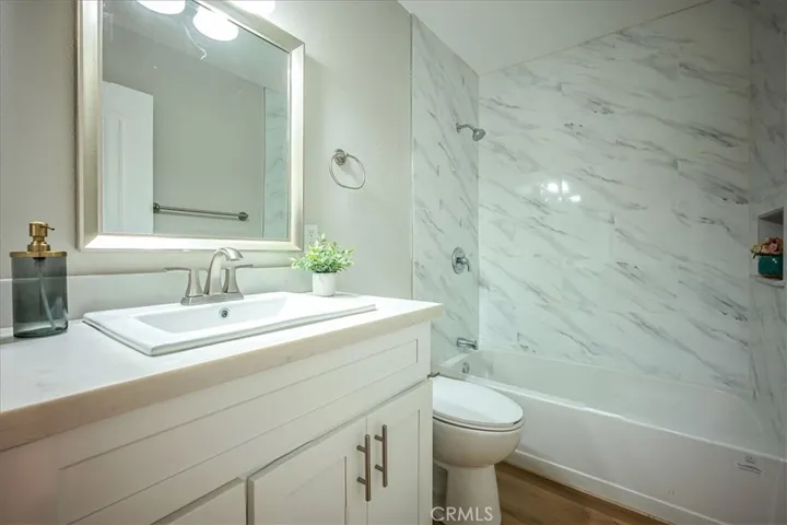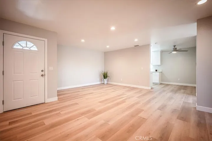 Great home on a cul-de-sac street! Recently upgraded. Improvements include new kitchen cabinets and quartz counter tops. New flooring throughout. New recessed lighting. New appliances, new range/oven will be installed before close of escrow. New interior and exterior paint. New interior doors. New sod in front yard. Large living room. Family room is close to kitchen with a slider to the back. 3 good size bedrooms with ceiling fans. Full bathroom in hallway with new vanity, new light fixture and new toilet, new tub, new shower wall tile. Nice size Primary bedroom with primary bathroom with double sink vanity, new faucets and light fixtures. Interior laundry. 2 car garage. No back neighbor! Central air and heat. Tile roof. All of this at a great price! Hurry this one will not last…