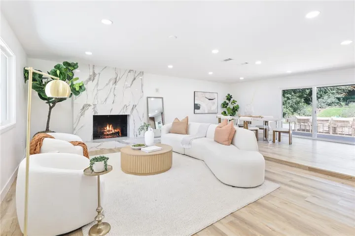 Step through the front door, and you’re greeted by a flood of natural light illuminating an open, thoughtfully designed interior. The gourmet kitchen is a chef’s dream, boasting top-tier appliances, sleek countertops, and abundant storage that makes meal prep a delight. It flows effortlessly into the living and dining areas, where a cozy fireplace sets the stage for intimate gatherings or relaxed evenings at home. Expansive windows frame the space, offering glimpses of the serene outdoors and enhancing the home’s airy ambiance.