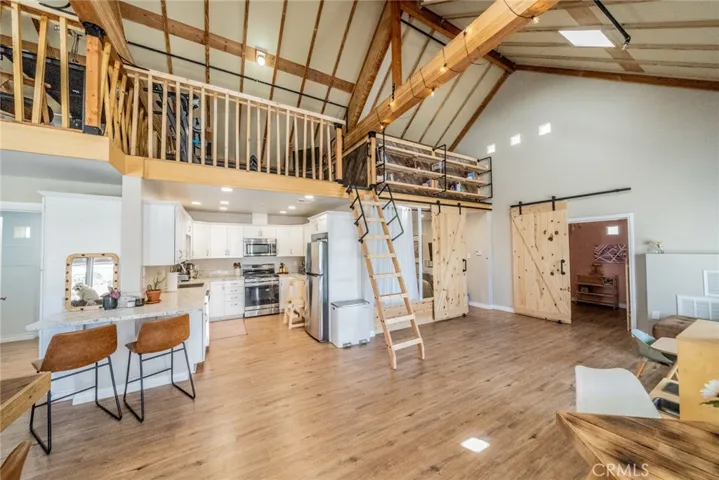 Welcome to Pinon Hills!!! This property has an assumable loan for VA buyers with a 4.5% interest rate. Just under 2 acres, this lot is conveniently close to both Phelan road and Highway 138. This 1,229 sqft home is built with strong CMU block, and large wood timber and has much to offer. With 2 Bedrooms and 1 Bathroom on the main floor and a Kitchen that opens up to the living room – – perfect for entertaining or enjoying family gatherings. Additionally, the first ladder takes you to the loft/office space with a surplus of cubbie storage. The second ladder is on a track that provides access to the middle loft space (the owner has a gym in it) and also the bookshelf above the main bedroom. They will also leave a new, un-installed, Pella window that matches the existing Pella window installed on the house next to the upper loft area. This property is also equipped with solar heaters that absorb heat from the sun and pump it via low-energy fans into the house. It works quite well to keep the home warmer year round. The shed is 24’x12′ and perfect for storing all your tools. Outside the shed, there are two-220 Volt plugs. Seller currently uses one 220V outlet to charge their electric vehicle and the other one to power a RV. Additionally, a walking path around the property has been created, perfect for exercising or soaking up the natural beauty. Only 10 minutes away from a highly rated charter school, Heritage, and short distance to mountain town Wrightwood and Ski Resort.