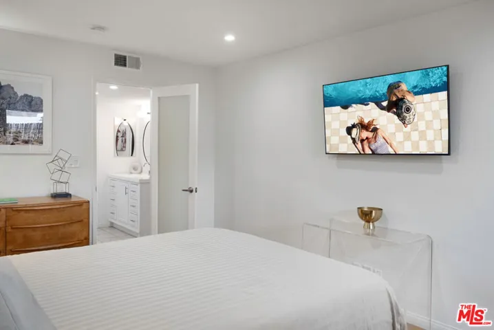 Mid Century renovated architectural, steps to fabulous Montana Ave. This Unique Light & Bright top floor unit features vaulted ceilings, clerestory windows, hardwood & tile flooring, recessed lighting, quartz countertops, fireplace, central air & heat, full size washer & dryer -(inside unit). New designer kitchen sparkles with Walker Zanger Tile, new Bosch@ dishwasher, new quartz countertops, new Samsung@ fridge new sink, new disposal, new plumbing. Huge 1 bed, 1 bath with large closets. Additional luxuries include -two designated tandem parking spaces in a secure garage and tons of storage. All windows are double pained for great insulation. Serene outdoor terrace with large sliding doors from the bedroom & living room create a perfect indoor – outdoor flow. 12 blocks to THE BEACH, quiet 10 unit building. Unit faces South and North. Earthquake insurance included in the low HOA dues. NO rental restrictions! Recent HOA upgrades include: new hot water heater, new garage gate motor, new balconies, new structural reinforcement, new main sewer-line! A rare unit in the best neighborhood!