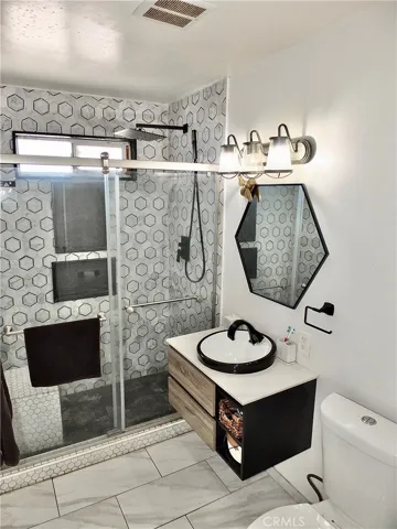 Welcome to 1430 E Michelson Street…a charming “duplex” , with a great growth opportunity , is serenely tucked away on a lovely tree lined street in North Long Beach. The front home is 2 bedrooms and 1 Bathroom…extensively renovated in the last 3 years, including central AC, new dual paned windows, recessed lighting, ceiling fans, new flooring, crown moldings, open concept gourmet kitchen with stainless steel appliances, decoratively refaced living room fireplace, new wardrobe closets, plus a rolling barn door opening to a beautifully renovated bathroom with a tiles rolling odor shower stall. A long gated driveway extends to a large motor-court, patio,