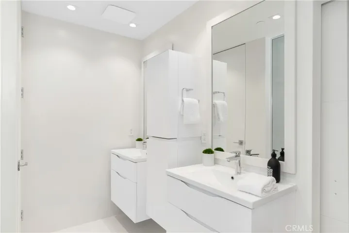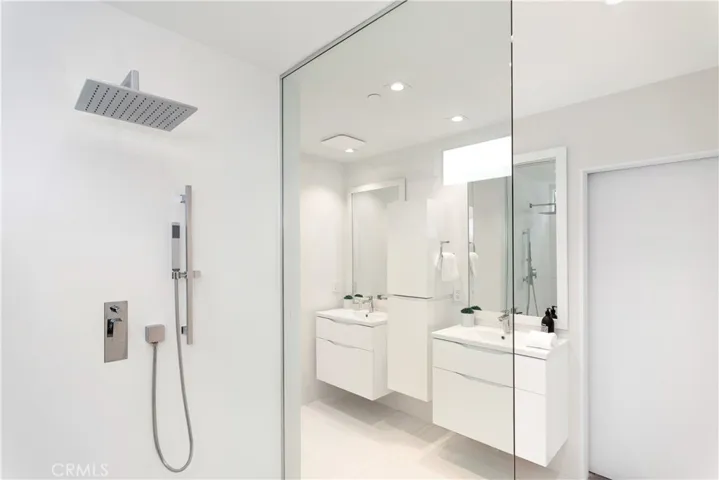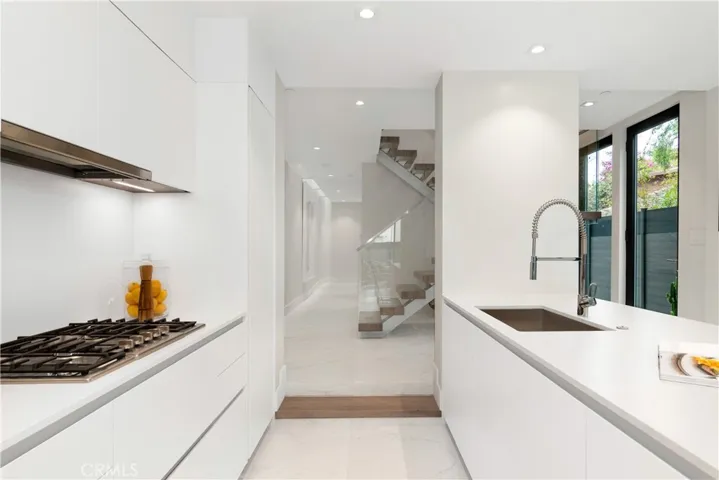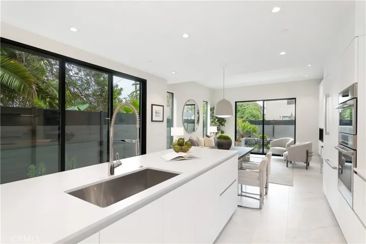 The interior is highlighted by elegant Spanish Porcelonosa tile floors that flow seamlessly throughout the space. A striking floating staircase leads you to the second floor, where you’ll find additional living areas designed with sophistication in mind. The chef’s kitchen features sleek Pedini Italian cabinetry, paired with high-end Bosch built-in appliances, offering both style and functionality. A state-of-the-art solar power system ensures sustainable living, while custom California Closets built-in organizers add to the home’s exceptional storage solutions.