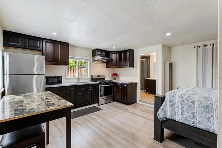 Welcome to this beautifully updated Arts and Crafts-era gem nestled in the heart of desirable Naglee Park. This unique property offers three distinct spaces, ideal for multi-generational living, house hacking, or investment income. Main Home (1,472 SF): * 3 spacious bed, 2 full bath * Updated kitchen with quartz countertops and stainless steel appliances * Elegant bathrooms with tiled showers, large vanities, and quartz counters * Beautiful hardwood floors, dental crown moulding, recessed lighting, dual-pane windows Finished Basement (Approx. 1,264 SF): * Private entrance, 2 bedrooms, 1 full bath * Comfortable living room and shared laundry * Luxury vinyl plank (LVP) flooring and ample storage Detached Garage(Approx. 324 SF): * Full kitchen, full bath, and open living/sleeping space * Ideal for AirBnB, guest quarters, or home office * LVP flooring and dual-pane windows The property is surrounded by low-maintenance landscaping and hardscape, creating a serene and easy-to-manage outdoor space. Prime Location: minutes to San Jose State University, downtown San Jose, parks, dining, and transit. Whether you’re looking for a family compound, live-rent investment, or flexible multi-unit living, this home offers endless possibilities in one of San Jose’s most charming neighborhoods!