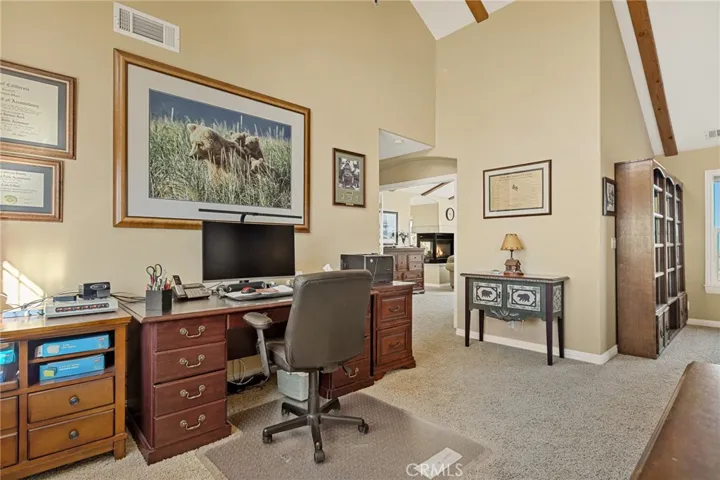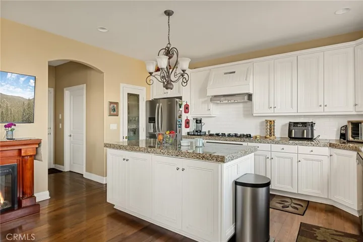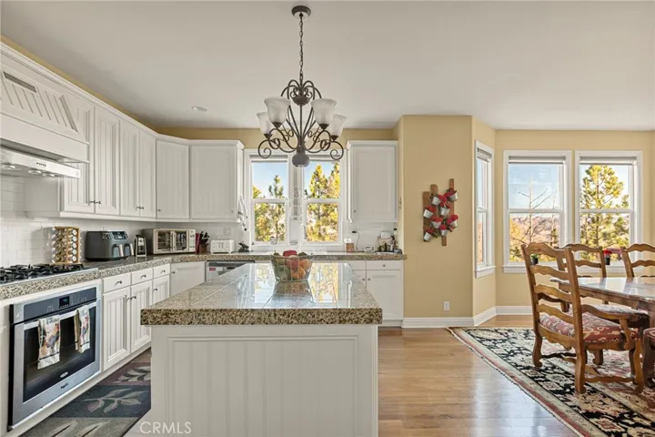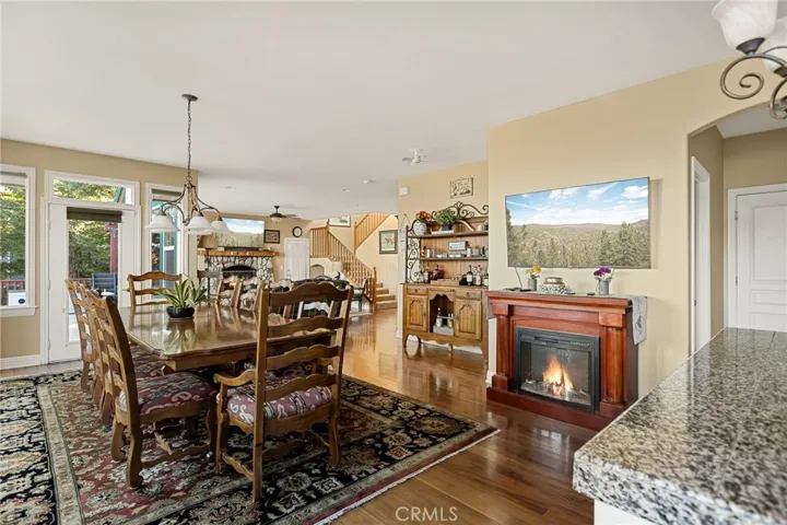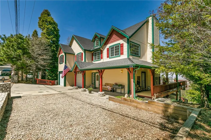 A Rare Mountain Gem with Views That Will Take Your Breath Away. Tucked away in a peaceful, low-traffic neighborhood, this mountain retreat offers the kind of views that are truly indescribable—like stepping into a painting. With 180-degree panoramic vistas stretching across forested ridgelines, the high desert, and twinkling city lights, you’ll find serenity and inspiration from every window. Plus, this home includes coveted lake rights to Lake Arrowhead—adding even more value to mountain living. Enjoy true level entry—a prized feature in snowy mountain communities—with not a single step to the front door. A large driveway able to hold 8 cars, deep two-car garage, and bonus RV parking or boat storage make this home as functional as it is beautiful. Inside, the cozy yet open living room welcomes you with rich hardwood floors, a striking river rock fireplace, and expansive windows that perfectly frame the show-stopping views. A spacious dining area flows into the charming farmhouse-style kitchen featuring white cabinetry, granite countertops, and stainless steel appliances—perfect for hosting holidays and special gatherings. The outdoor living space rivals the interior, with several distinct entertaining decks—all finished with a weatherproof surface for year-round use and durability. Whether you’re enjoying al fresco dinners, sipping morning coffee, or relaxing under the stars around the firepit, every space was thoughtfully designed to take full advantage of the incredible views. Upstairs, all bedrooms await along with a flex space perfect for game nights, movie marathons, or additional sleeping. This bonus room features vaulted ceilings, a fireplace, and some of the best views in the house. The primary suite is a true retreat with ample space for a king bed, a double-sided fireplace shared with the ensuite bath, and more stunning views of the National Forest. The bathroom includes a soaking tub, walk-in shower, dual vanities, and a huge walk-in closet with attic access. Two more spacious bedrooms and a stylish full bath are just down the hall. Below the home is a third level for storage or potential expansion, and additional outdoor sheds are perfect for tools, gear, or seasonal décor. A private access road below offers even more flexibility, ideal for off-road vehicle storage. AC, generator, & lake rights. Whether you’re looking for a full-time residence, second home, or future short-term rental, this property checks every box. Comes fully furnished.