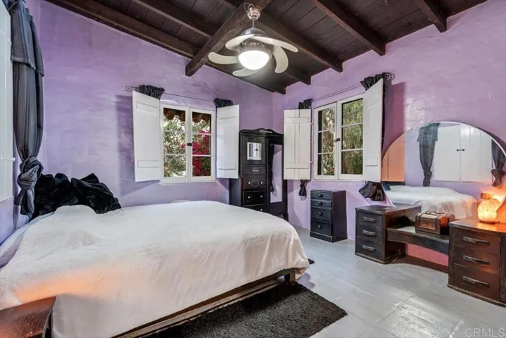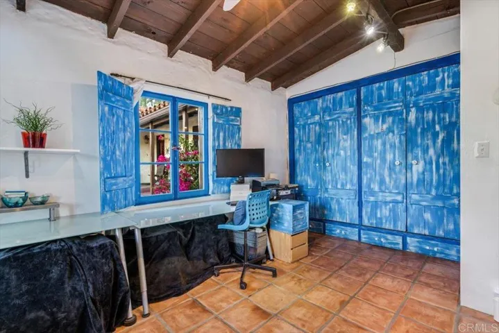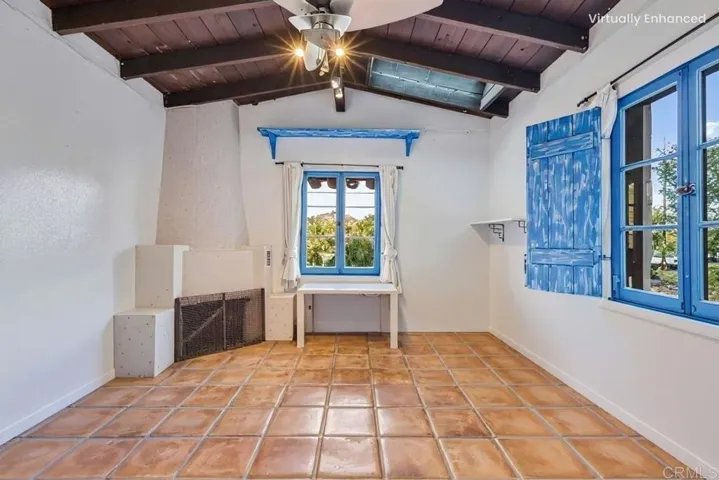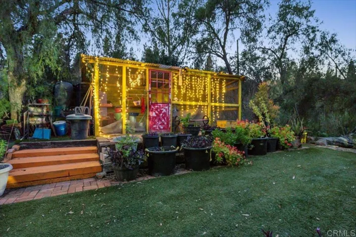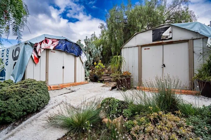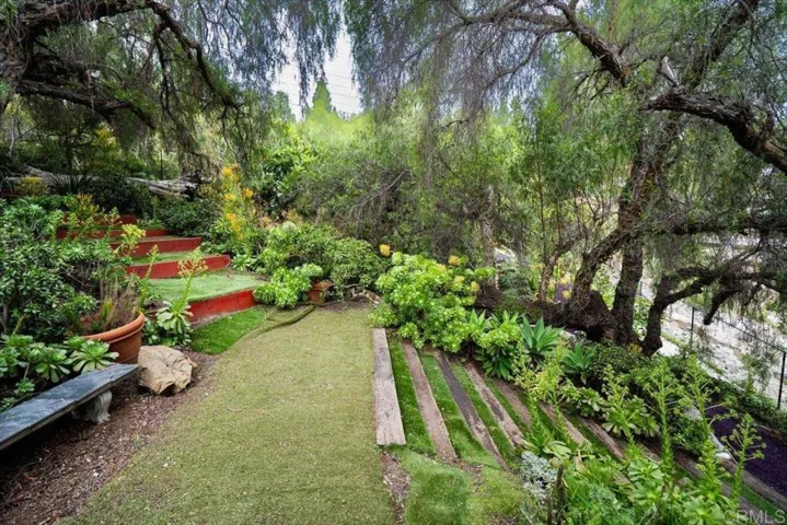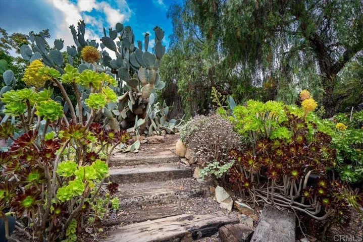 SELLER MAY CONSIDER A 2/1 INTEREST RATE BUY DOWN WITH THE RIGHT OFFER!!! Appraised: $1.1M. Enchanting 1939 Authentic adobe cottage on cul-de-sac on ¾ of an acre. Vintage charm and tranquil privacy intertwine at this truly unique property. Hacienda style front porch with peaceful water fountain. Hidden Gem, Just A few minutes walk to Charming Historic La Mesa Village that hosts weekly Farmers Market yearly street community events, shops and restaurants. This secluded and serene property feels worlds away, yet has quick access to freeways and trolley. French windows throughout and back Dutch Door. This one-of-a-kind villa chalet is an artists’ retreat, an urban gardener, nature lover and homesteading dream. The enchanting yard feels like a private forest with Breathtaking Views of Mt. Helix. Home features 18 inch Adobe walls which provide temperature control and a quiet tranquil indoor atmosphere , beamed ceilings, 3 beehive fireplaces, sun room and custom scraped maple flooring, Iceland granite Kitchen countertops and custom hand made artistic backsplash. Dining room floor quartz from India. Bedroom/office floor handmade Saltillo Terracotta Tiles imported from Mexico. Laundry and ½ bath located downstairs in the garage. Step outside to a red brick patio ideal for alfresco gatherings, an entertaining paradise complete with a resurfaced in-ground SWIMMING POOL (2009), Artistic Colorful Chicken Coop with live chickens (convey with property), Dome Greenhouse, multiple sheds, water storage containers, rain barrels, a raised entertainment stage, Fire Pit area and outdoor shower. Inside and out, the home has been lovingly cared for with updated electrical, copper plumbing, (2025 ) energy efficient variable speed pool pump , (2024) dishwasher and a 50+ year clay tile roof (installed 2007) with UVA protected skylights that open. Huge fully fenced multi-tiered expansive back yard behind gated entry. Mystical setting with Lush mature trees, vegetable garden ,beautiful low maintenance drought tolerant landscaping including artificial turf strolling pathways and fruit bearing trees Mills Act Historic Designation potential