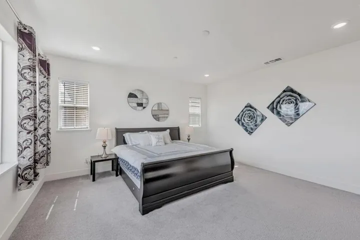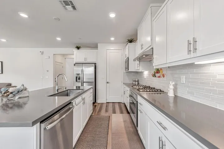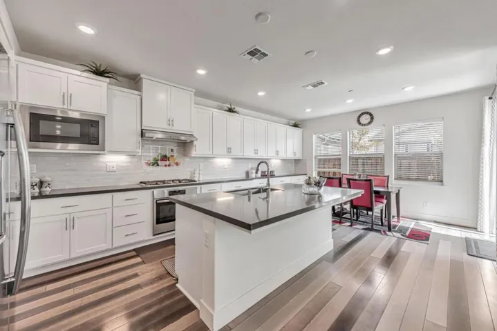 North facing, bright and gorgeous contemporary home in the desirable community of The Preserves in Westside San Ramon. Beautiful gourmet kitchen dining combo enjoys the spacious island with a prep sink, contemporary styled cabinetry, quartz counters, beautiful backsplash, gas cooktop, pantry, stainless steel appliances. This meticulously maintained home features a spacious Master suite with a nice view, spacious bathroom with two vanities,Soaking Tub and Standing Shower, 2 walk-in closets-One for Her and One for Him, 2 more bedrooms upstairs with Full bath and a convenient main floor bedroom and full bath perfect for the in-laws and guests. This house has a fully paid solar system ensuring energy efficiency. The family room and dining room opens up to a serene backyard that is perfect for outdoor dining and relaxation. Community amenities include a park, fire pit, bocce ball court, playgrounds, clubhouse, swimming pool, barbecue pit..Don’t miss this opportunity to own this beautiful move-in-ready home in a prime location with top ratings schools.