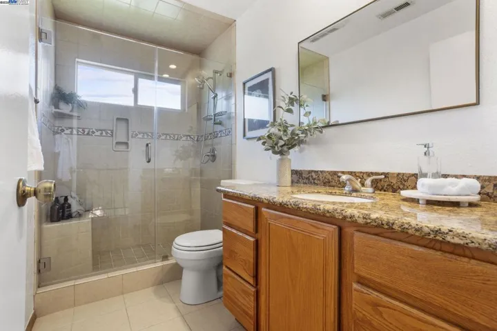 Nestled in the desirable Hayward Hills, this beautifully upgraded home offers the perfect blend of comfort and style. Inside, enjoy a bright and airy living room with soaring vaulted ceilings, fresh interior paint, and newer flooring. The kitchen is designed for both form and function, complete with granite counters, built-in pantry, roll out drawers and a gas stove—highly sought-after by cooking enthusiasts. The primary bedroom suite has two large windows and an abundance of natural light, walk-in closet, fireplace, sitting area, and remodeled en-suite bathroom featuring quartz countertop, double sinks, and a large linen closet for added storage. The Tahoe-like backyard is a true retreat, featuring a spacious deck with built-in seating, mature trees, and lush landscaping—ideal for relaxing in nature or entertaining guests year-round. Wonderful Hayward Hills location near local parks, restaurants, downtown Hayward and Castro Valley. Very convenient for traveling the Bay Area freeways using nearby 580 or 880 to the Tri-Valley, Silicon Valley, and San Francisco.