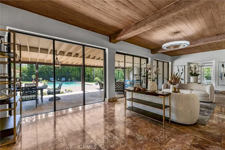 Set behind gates in San Marino’s coveted estate neighborhood, this extraordinary 1.52-acre property showcases a magnificent Spanish Colonial residence by celebrated architect Roland E. Coate. The extravagant main home features a dramatic 570-foot reception hall, elegant formal living and dining rooms, a richly paneled library, and a gourmet kitchen with a butler’s pantry. The expansive family room opens to a stunning wood-beamed patio, ideal for seamless indoor-outdoor living.