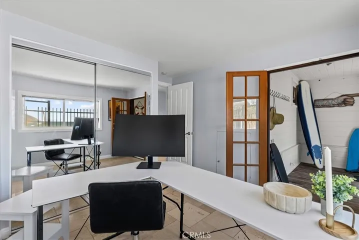 The open-concept living and dining areas seamlessly connect to a wraparound deck, ideal for entertaining or relaxing. The home features an updated kitchen, bathrooms, new flooring from the stairs to the second floor and AN ideal floor plan! With its south-facing orientation, the unit is bathed in natural light throughout the day and stunning sunsets in the evening. On the first floor, there is a convenient bedroom/office and full bathroom for guests. A practical sand room is located off the deck where you can store your surfboard, wet suits and everything else used to enjoy the beach.